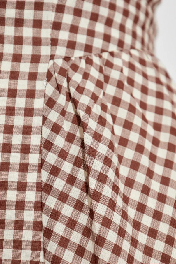 Sukienka „Callie” to wyraz ponadczasowego kunsztu, wpisujący się w kanon elegancji z nowoczesnym akcentem. Jej maxi długość, subtelnie dopasowana góra oraz rozkloszowany dół z wdziękiem podkreślają sylwetkę, a szeroki, kwadratowy dekolt na cienkich ramiączkach dodaje lekkości i wyrafinowania. Wzór szlachetnej, drobnej kraty w odcieniach brązu i bieli tworzy eteryczną szachownicę, która stanowi kwintesencję klasyki.