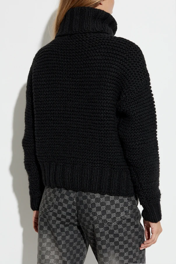 Czarny golf z logo z ekskluzywnej kolekcji damskiej marki MISBHV to kwintesencja współczesnej elegancji i niebanalnego wyrazu. Sweter charakteryzuje się swobodnym, lekko oversize’owym fasonem oraz wyrazistym, grubym splotem dzianiny, który zapewnia nie tylko komfort użytkowania, lecz także zachwyca masywną i miękką fakturą. Dominująca czerń została uzupełniona efektownym, kontrastowym logotypem autorki projektu — wyraziste, odręczne logo na wysokości klatki piersiowej stanowi nowoczesny detal podkreślający wyjątkowość produktu.