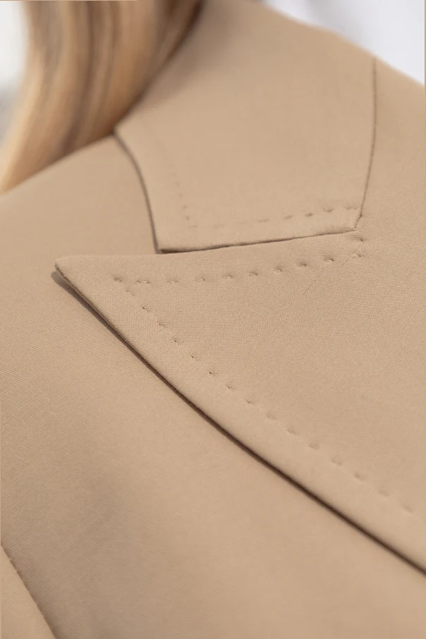 Dwurzędowa marynarka „Suez” z ekskluzywnej kolekcji Max Mara to kwintesencja wyrafinowanej elegancji w nowoczesnym wydaniu. Jej klasyczny, wydłużony fason typu oversize harmonijnie podkreśla sylwetkę, delikatnie opadając za linię bioder. Wyraziste, subtelnie zarysowane ramiona oraz szerokie, doskonale skrojone klapy z precyzyjną ręczną stebnówką świadczą o mistrzowskim krawiectwie.