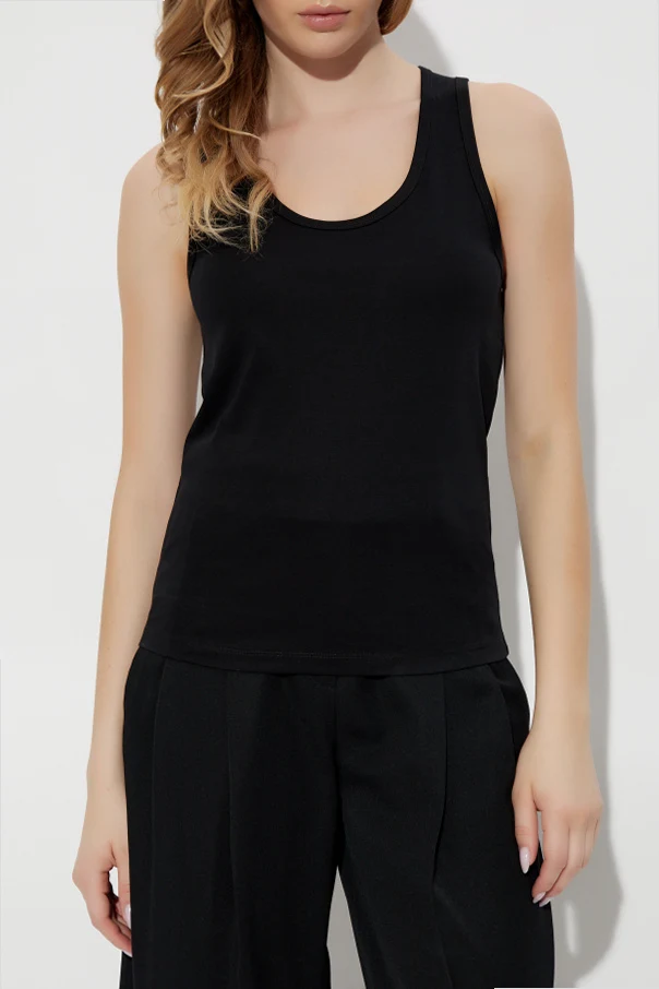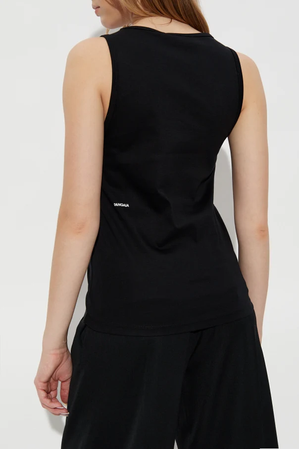 Czarny top bez rękawów marki Pangaia to wyraz ponadczasowej elegancji i minimalistycznego szyku. Dopasowany, lecz niezwykle wygodny fason podkreśla sylwetkę, harmonijnie łącząc klasyczny krój z nowoczesnym charakterem. Okrągły, szeroko wycięty dekolt oraz długość sięgająca talii czynią ten model dyskretnie zmysłowym.