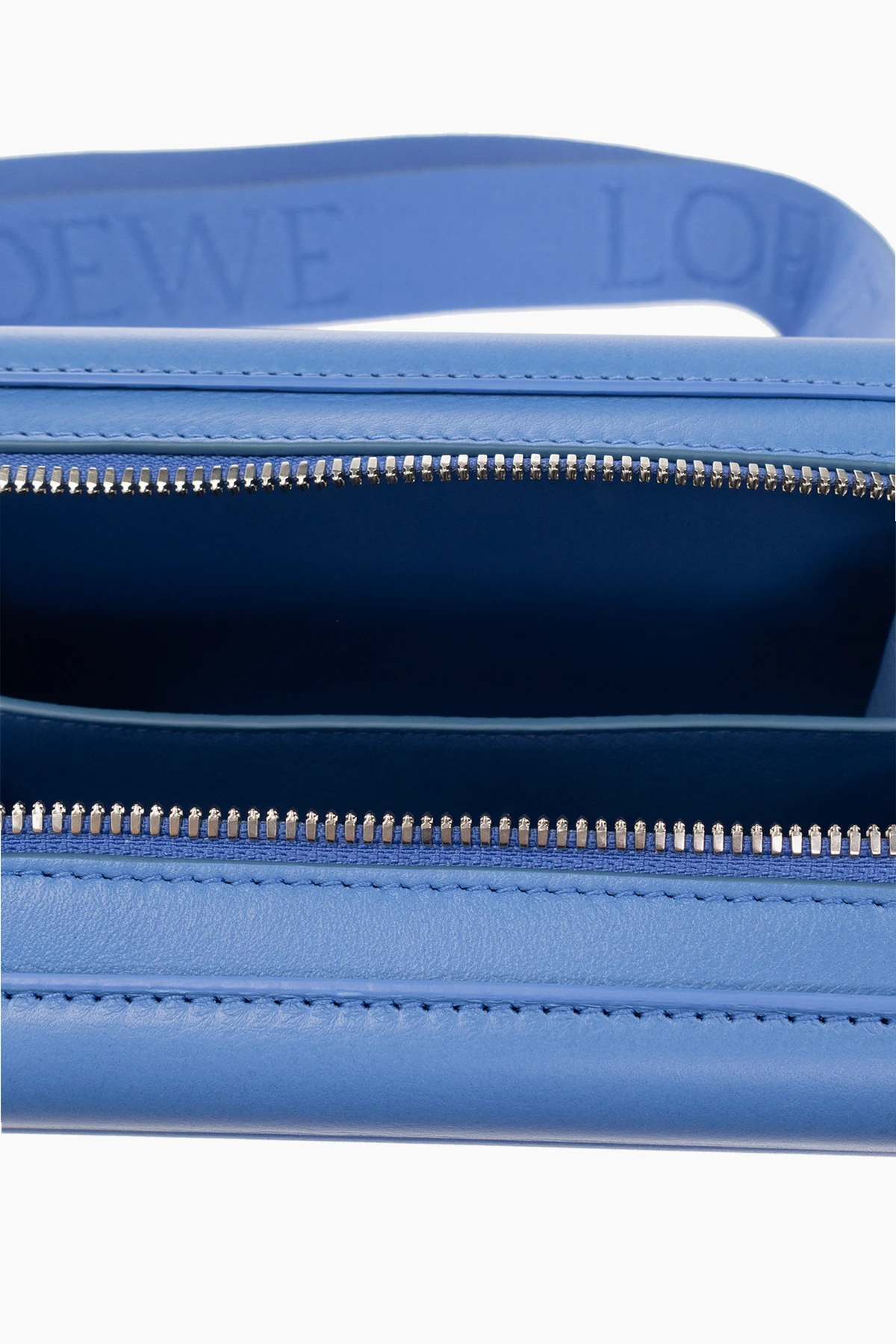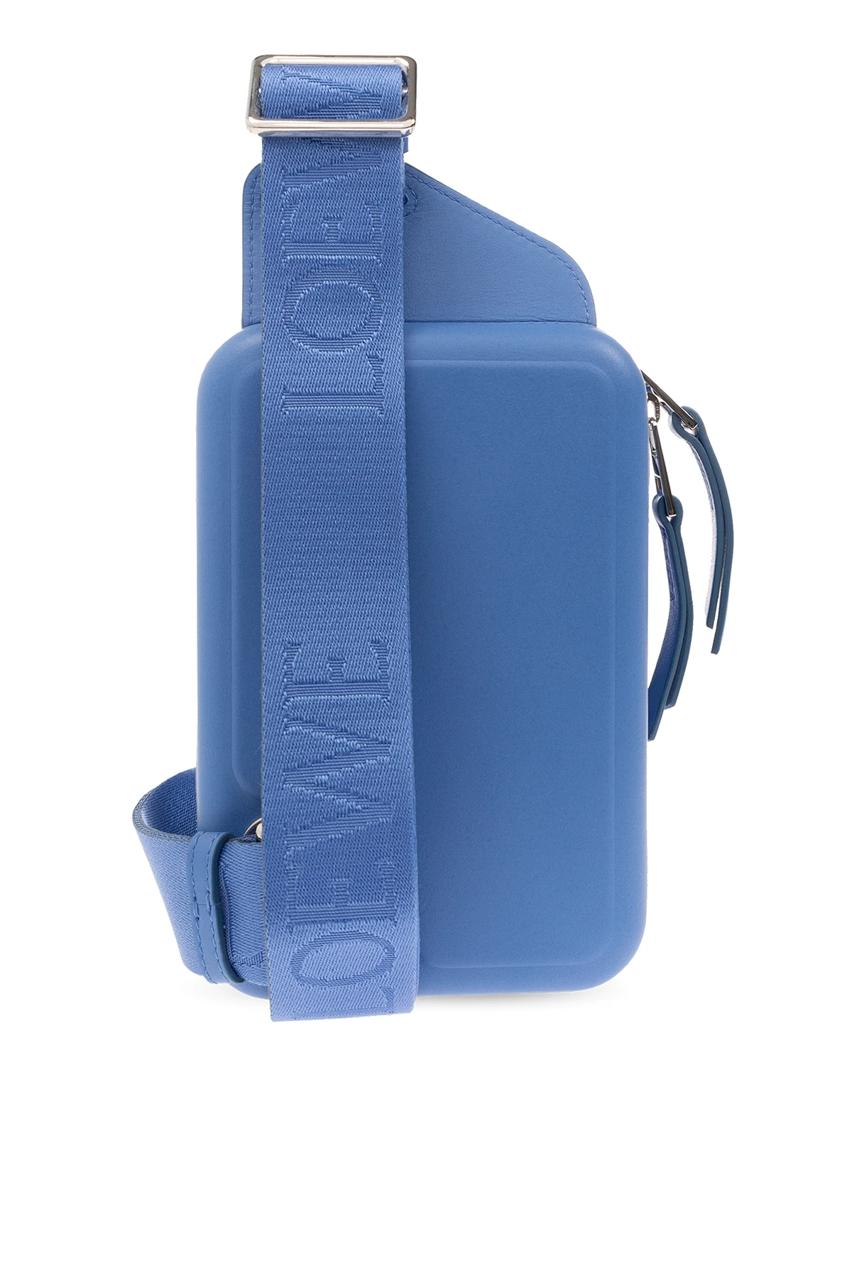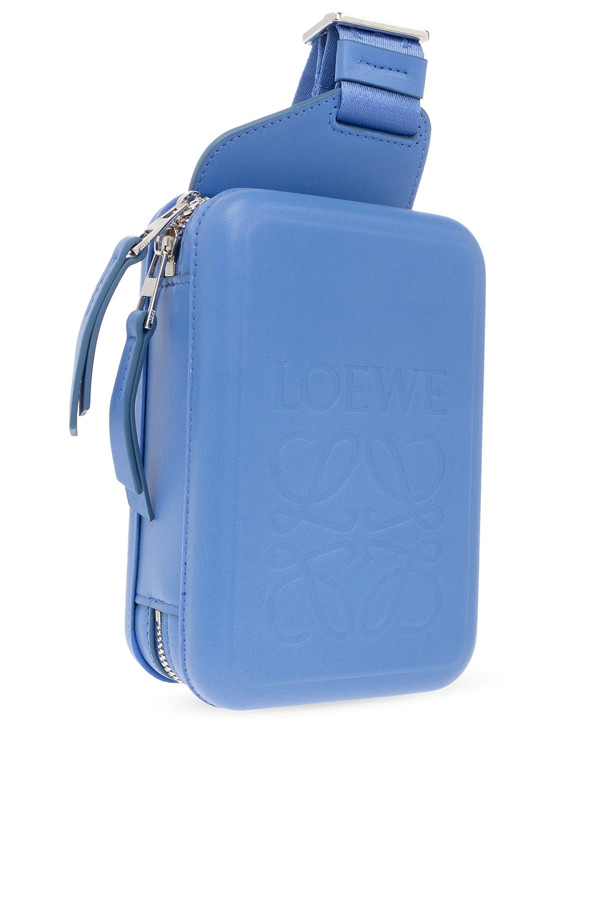 Niebieska torba na pas Loewe. Wykonana ze skóry cielęcej. Dwubiegunowy zamek. Ozdobiona wytłoczonym logo. Pas na ramię. Wewnątrz dwie komory. Metalowe wykończenie w kolorze srebrnym.
