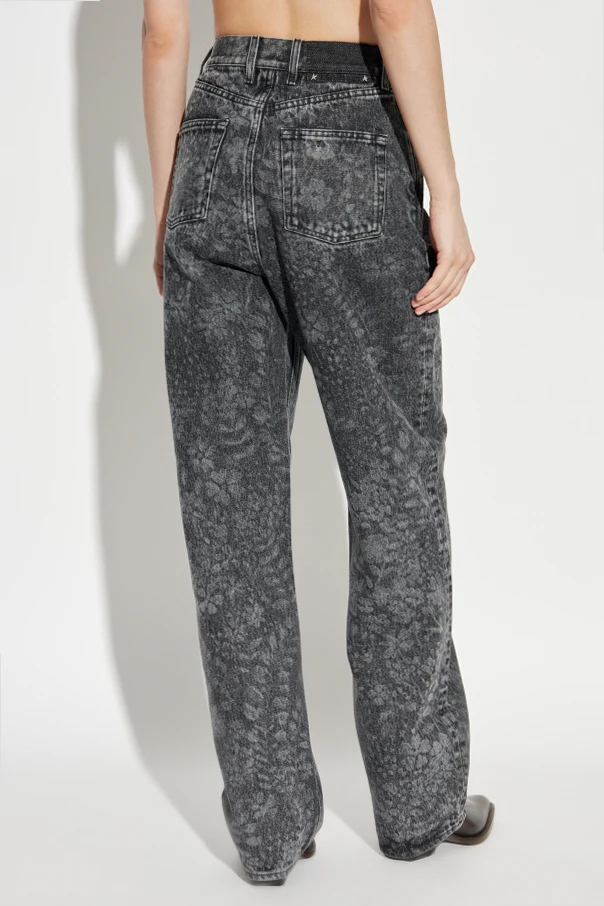 Te jeansy typu „straight” z motywem kwiatowym zachwycają kunsztem wykonania charakterystycznym dla marki Golden Goose – włoskiego synonimu nienachalnego luksusu połączonego z miejską nonszalancją. Klasyczny fason prostych nogawek, regularnie dopasowanych w biodrach i udach, wykończony średnim lub wysokim stanem, podkreśla sylwetkę i nadaje całości wyrafinowaną lekkość.