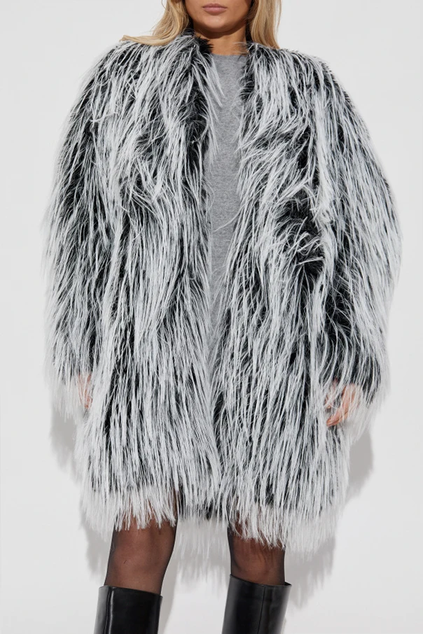 Sztuczne futro „Adesso” marki SPORTMAX to wyraz ponadczasowej elegancji, ukazujący kunszt włoskich tradycji krawieckich w nowoczesnym wydaniu. Klasyczna, luźna forma o długości za kolano oraz szerokie rękawy w stylu oversize subtelnie podkreślają niezależny charakter noszącej. Wydłużone, gęste i miękkie włosie, przenikające się tonacje szarości, czerni i bieli oraz luksusowe, lekko połyskujące wykończenie nadają okryciu wyjątkowego wyrafinowania. Materiał zachwyca autentycznością struktury, wiernie oddając naturalne piękno futra, zapewniając przy tym komfort i poczucie luksusu.