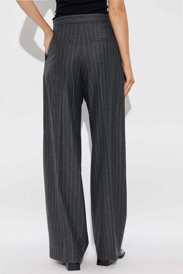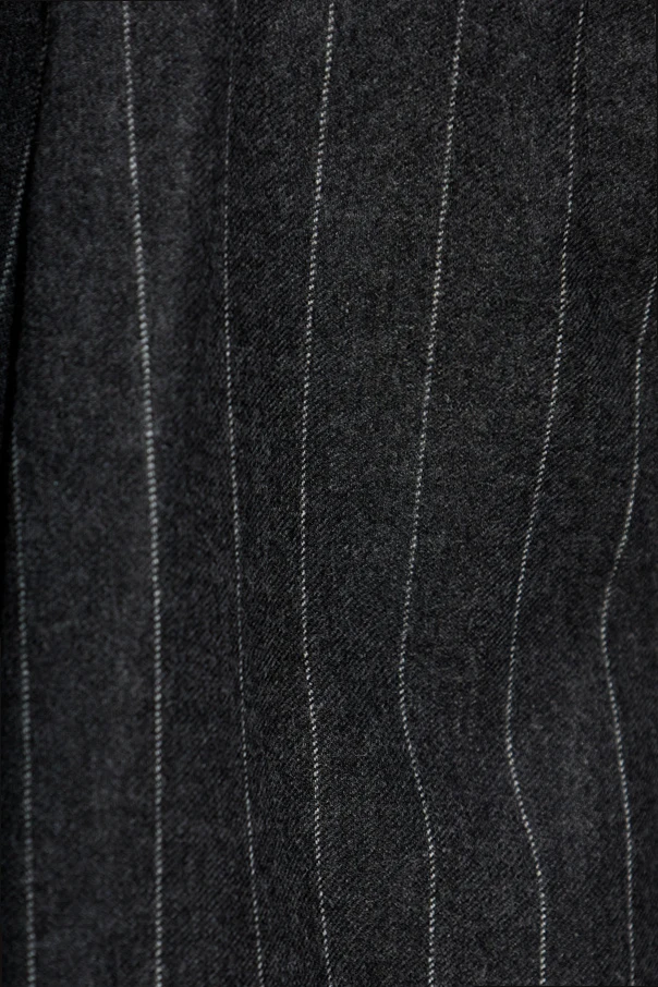 Delikatny wzór w jasne, pionowe prążki na szarym tle optycznie wysmukla i wydłuża nogi, podkreślając formalny, a zarazem subtelny charakter spodni. Wykorzystanie wyśmienitej jakości materiału o miękkiej, matowej strukturze, będącego finezyjną mieszanką naturalnych i innowacyjnych włókien, gwarantuje nie tylko komfort, lecz także trwałość i niezrównany styl.