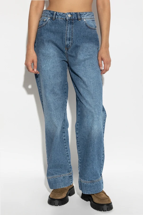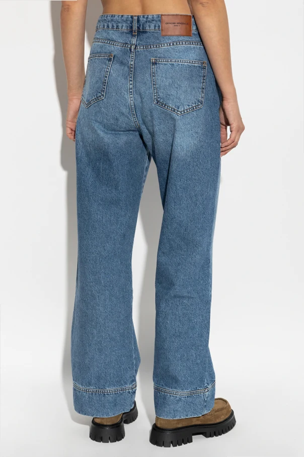 Jeansy z logo autorstwa Officine Générale to esencja miejskiej elegancji i ponadczasowej formy. Wyróżnia je starannie skrojony fason regular fit z szeroką, prostą nogawką zakończoną wyrazistym mankietem, który nadaje sylwetce lekkości i nowoczesnego charakteru. Odcień średniego niebieskiego oraz jednolity, klasyczny denim bez rozpraszających aplikacji podkreślają szlachetną prostotę projektu.
