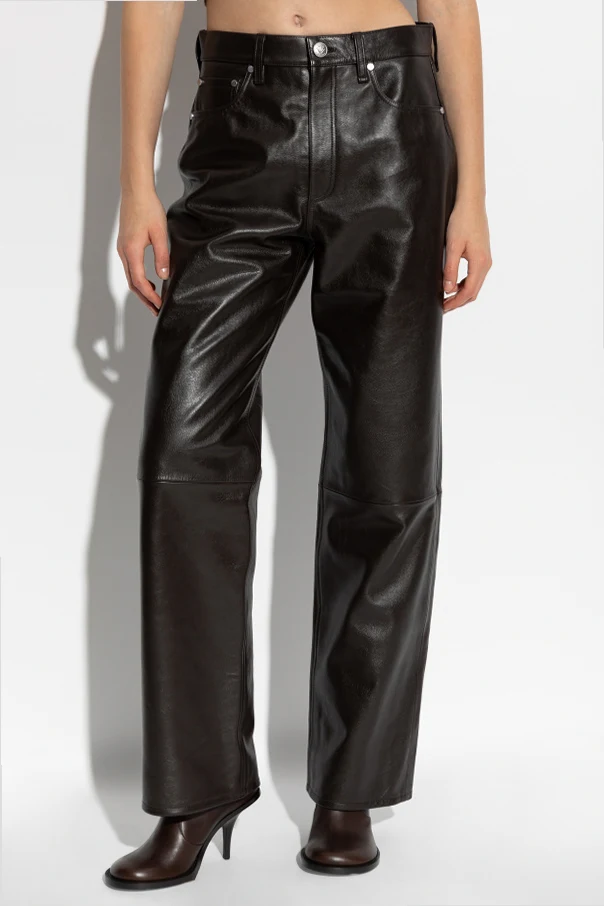 Skórzane spodnie marki Rag & Bone zachwycają wysublimowaną estetyką i kunsztem wykonania. Klasyczny, prosty fason z lekko szerokimi nogawkami oraz wysokim stanem podkreśla sylwetkę, zapewniając jednocześnie swobodę ruchów. Szlufki na pasek oraz wyraziście zaznaczony pas wprowadzają wyrafinowaną funkcjonalność.