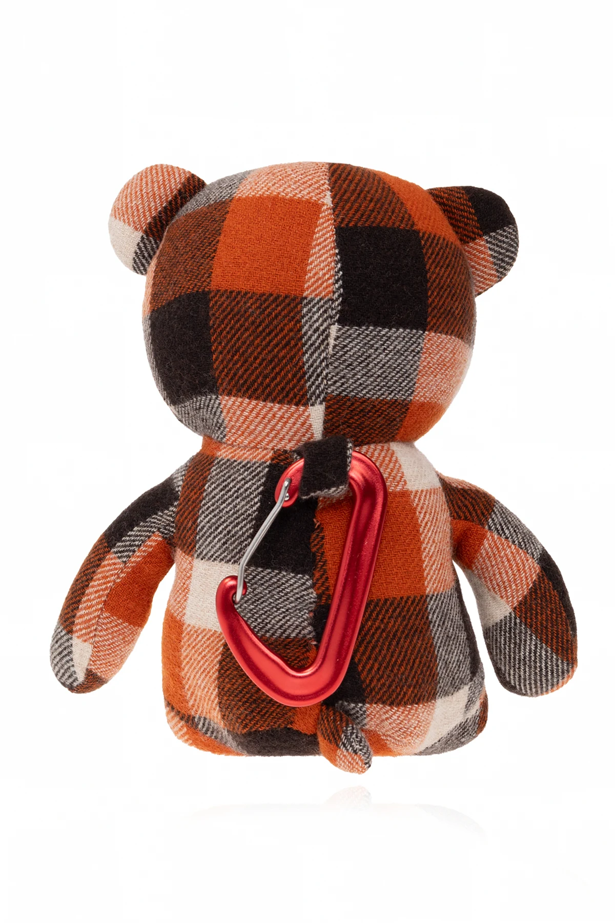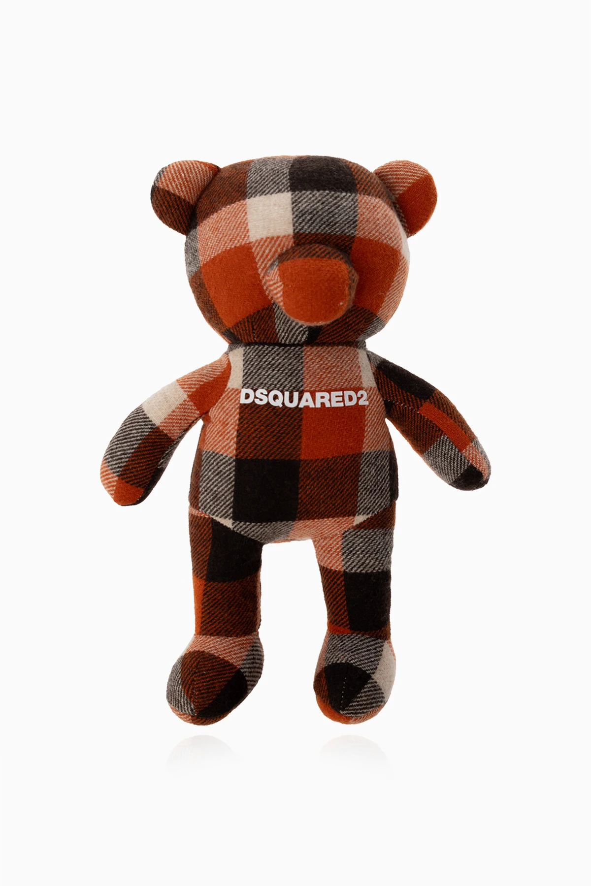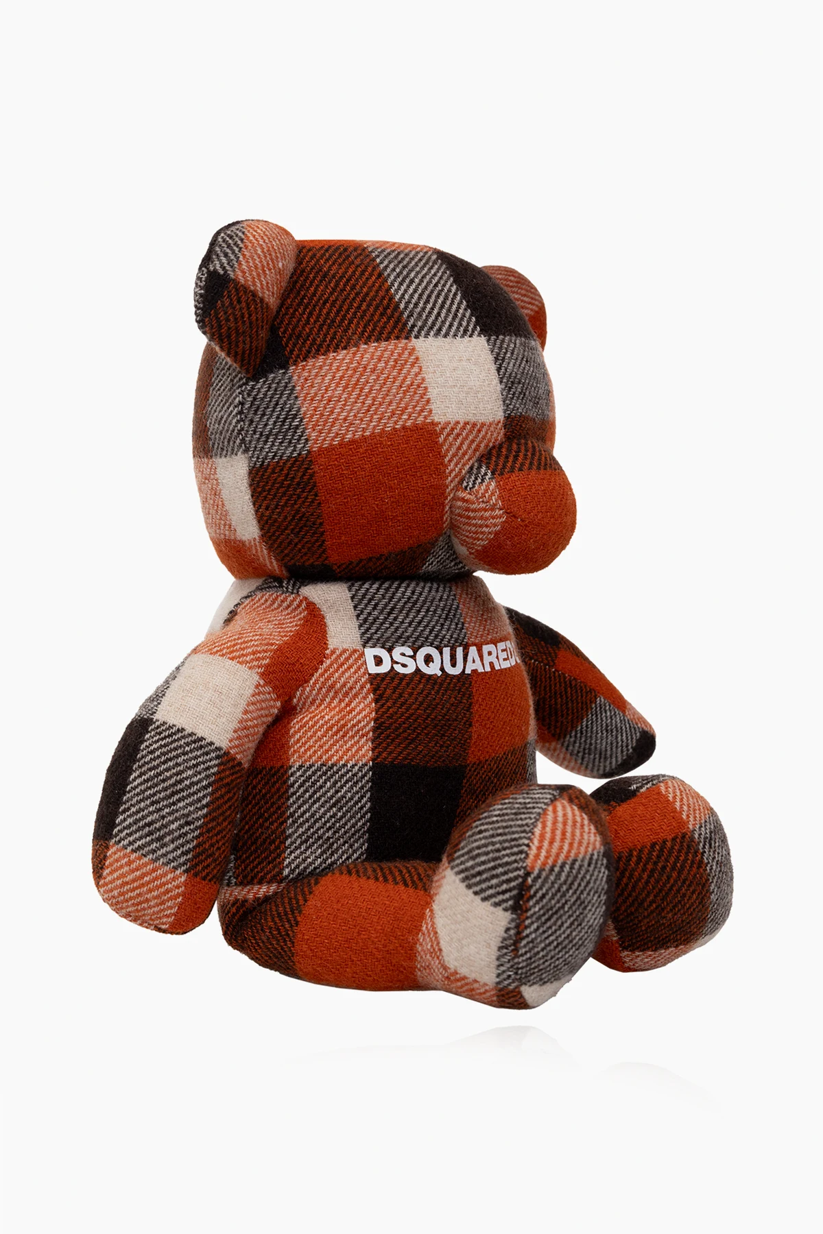 Pomarańczowo-kremowo-brązowy miś Dsquared2. Wykonany z wełny. Ozdobiony wzorem z logo w kolorze białym. Wykończony karabińczykiem w kolorze srebrno-czerwonym.