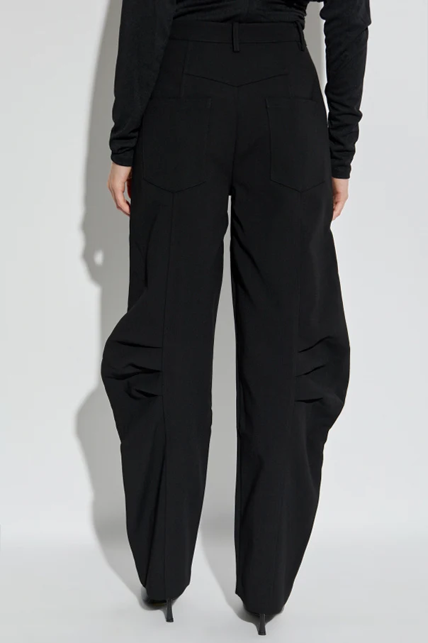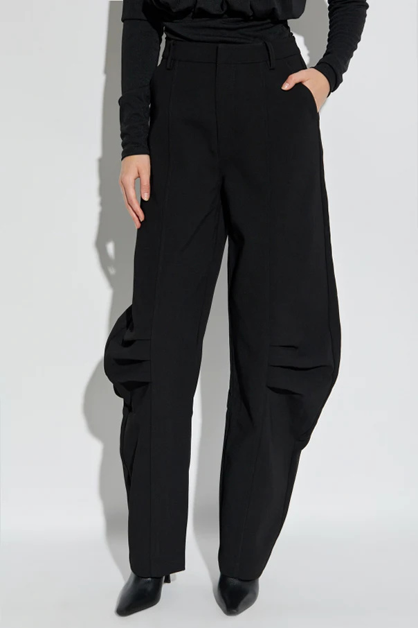 Spodnie typu ‘balloon’ od marki ROTATE to współczesna interpretacja klasycznego kroju o wyrazistej, awangardowej linii. Perfekcyjnie skrojone — szerokie na wysokości ud i kolan, harmonijnie zwężają się ku dołowi, podkreślając zalety sylwetki oraz nadając unikatowy, modowy charakter. Wysoki stan subtelnie modeluje talię, gwarantując wyjątkowy komfort użytkowania.