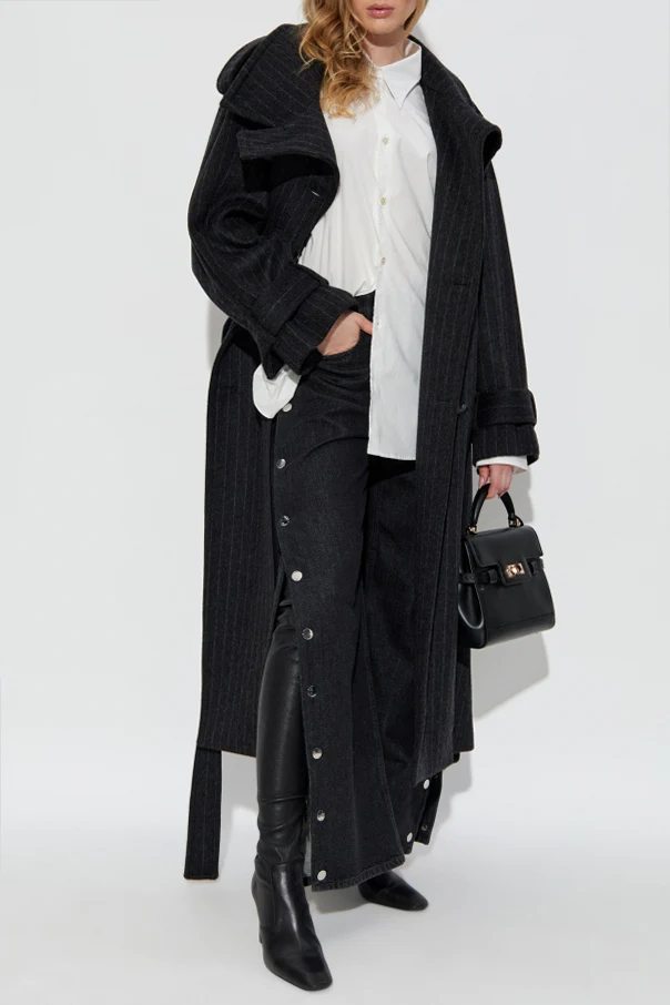 Stworzone z wysokogatunkowej, niespętanej elastanem bawełny, zachwycają szlachetną fakturą i głęboką, czarną barwą. Pięć klasycznych kieszeni harmonizuje z rzędem srebrnych nap po obu bokach nogawek – detalem wysublimowanym, z subtelnym grawerem logo projektanta, będącym znakiem kunsztu i nieprzeciętnej dbałości o szczegóły.