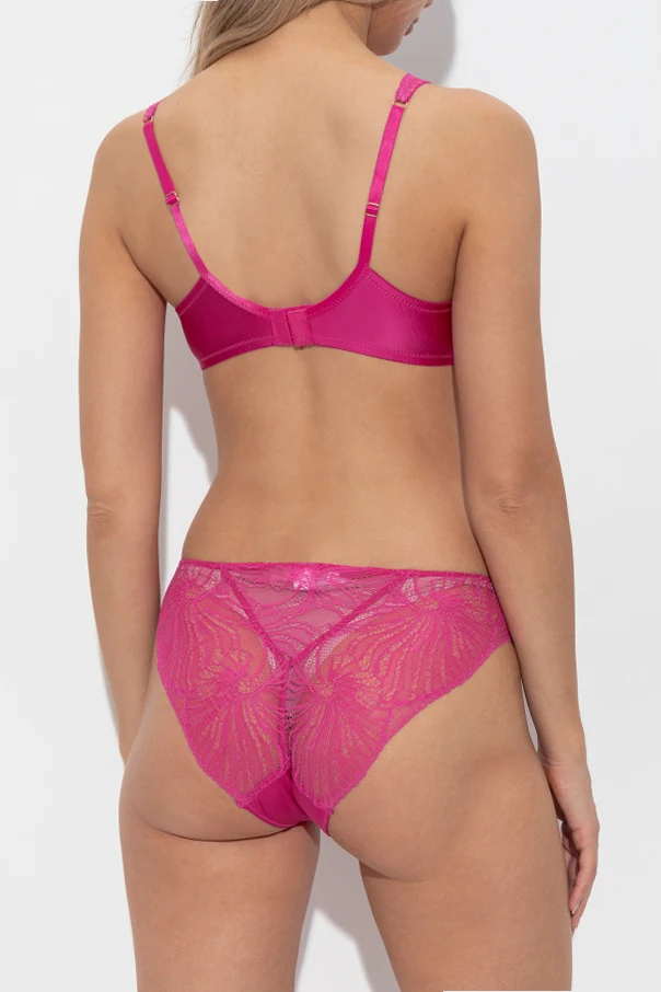Biustonosz wykonano z wyjątkowo delikatnej koronki o ażurowym, kwiatowym wzorze, układającej się w płynne fale oraz liście, co nadaje całości wyrafinowanego charakteru. Gładkie, satynowe boki i tył dbają o wygodę każdego dnia, podczas gdy ramiączka, częściowo obszyte koronką, dodają wyrazu temu wyjątkowemu projektowi. Produkt nie posiada widocznych napisów ani logotypów, co podkreśla jego ponadczasową dyskrecję.