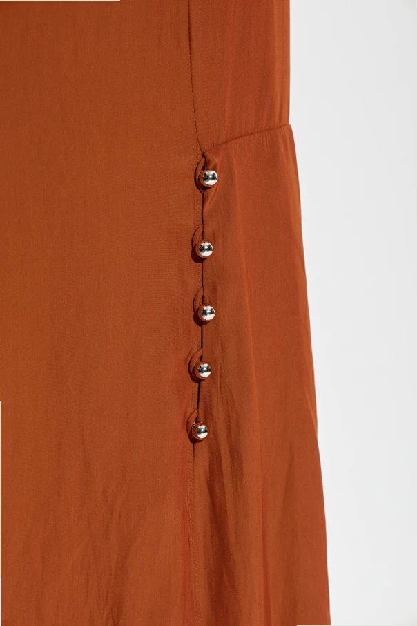 Elegancki detal w postaci metalicznych guzików przy rozcięciach