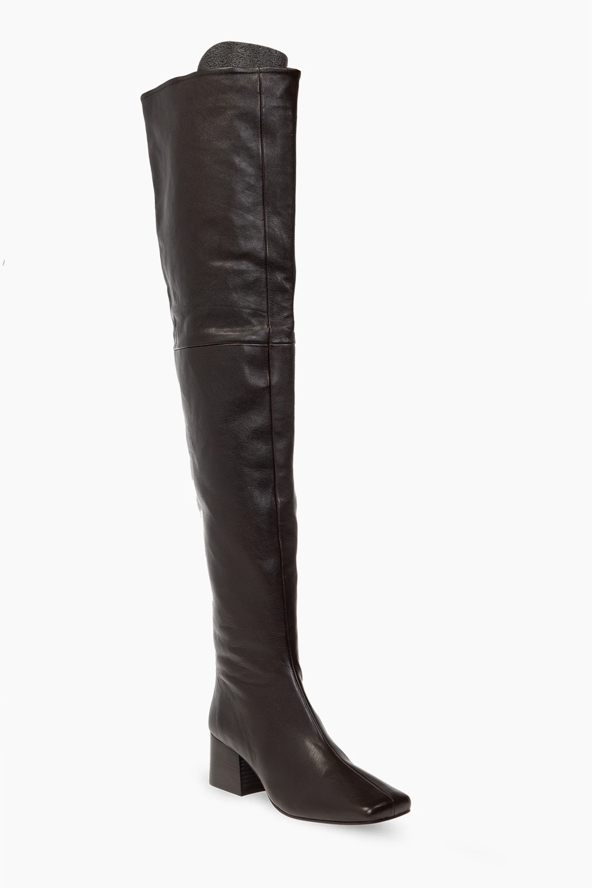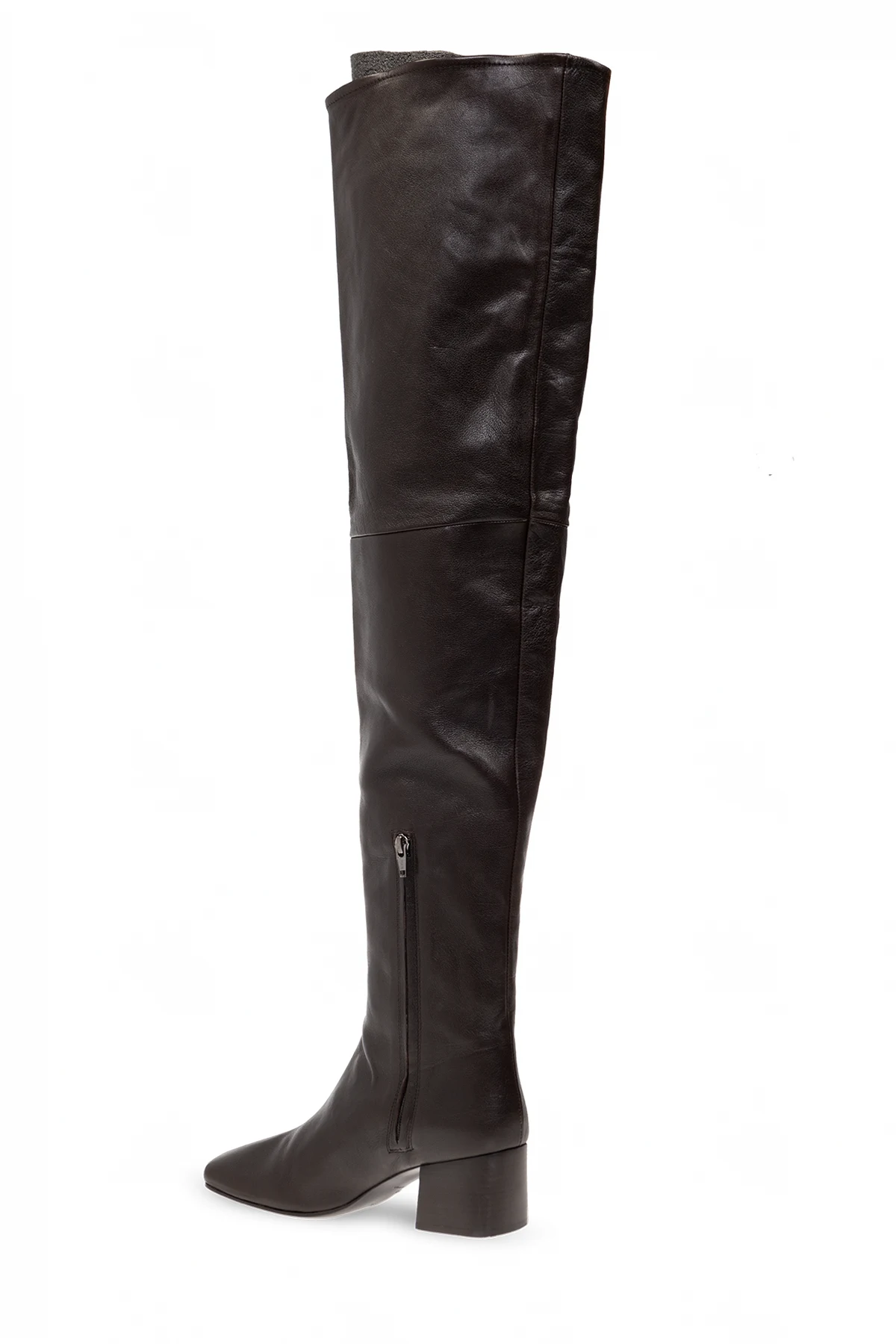 Brązowe kozaki Lemaire. Wykonane ze skóry. Z boku zapinane na zamek. Dekoracyjne przeszycie. Kwadratowy nosek. Brązowa, skórzana podeszwa.