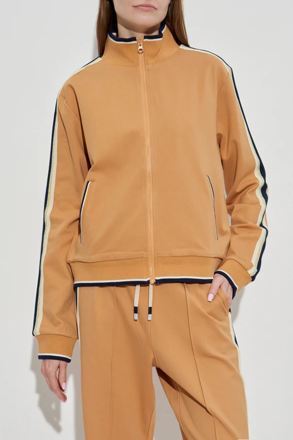 Bluza zapinana jest na zamek o kolorze zbliżonym do całości, a praktyczne dwie kieszenie boczne z czarną lamówką łączą estetykę z funkcjonalnością. Precyzyjne wykończenia oraz starannie dobrane materiały, jak wiskoza i poliamid z dodatkiem elastanu, zapewniają luksusowy komfort użytkowania i trwałość formy.