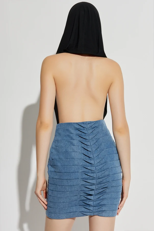 Body z odkrytymi plecami od Balmain to propozycja skierowana do miłośniczek ponadczasowej elegancji, odważnej formy oraz subtelnego wyrafinowania. Głęboko wycięty dekolt z przodu, otulony szerokimi ramiączkami, tworzy niezwykle kobiecy, a zarazem drapieżny efekt plunge . Plecy pozostają całkowicie odkryte, co podkreśla unikalność fasonu typu backless oraz zmysłowość sylwetki.