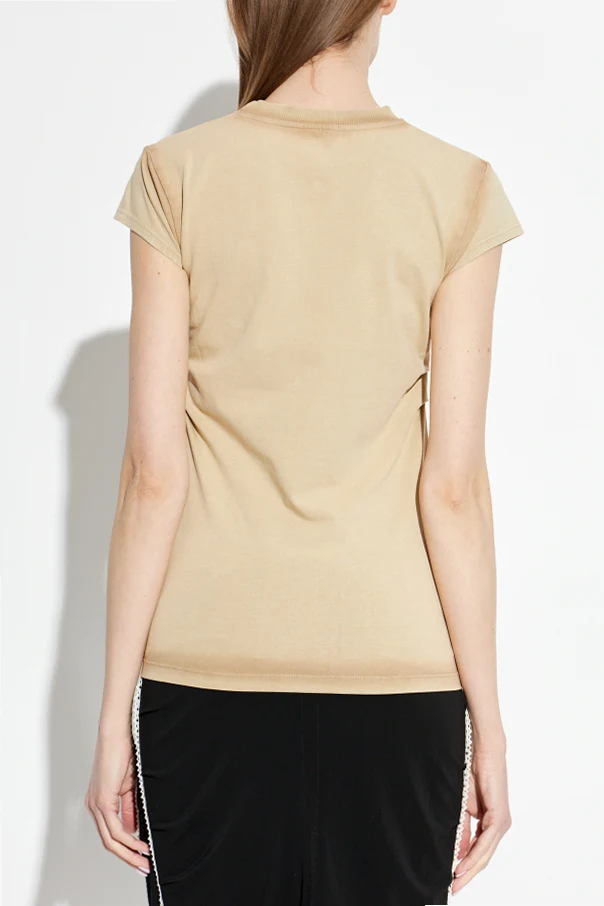 Ten wykwintny T-shirt z krótkim rękawem to uosobienie subtelnej elegancji w codziennym wydaniu. Wykonany z wyselekcjonowanej dzianiny bawełnianej, zachwyca miękkością i elastycznością tkaniny, zapewniając niezwykły komfort noszenia.