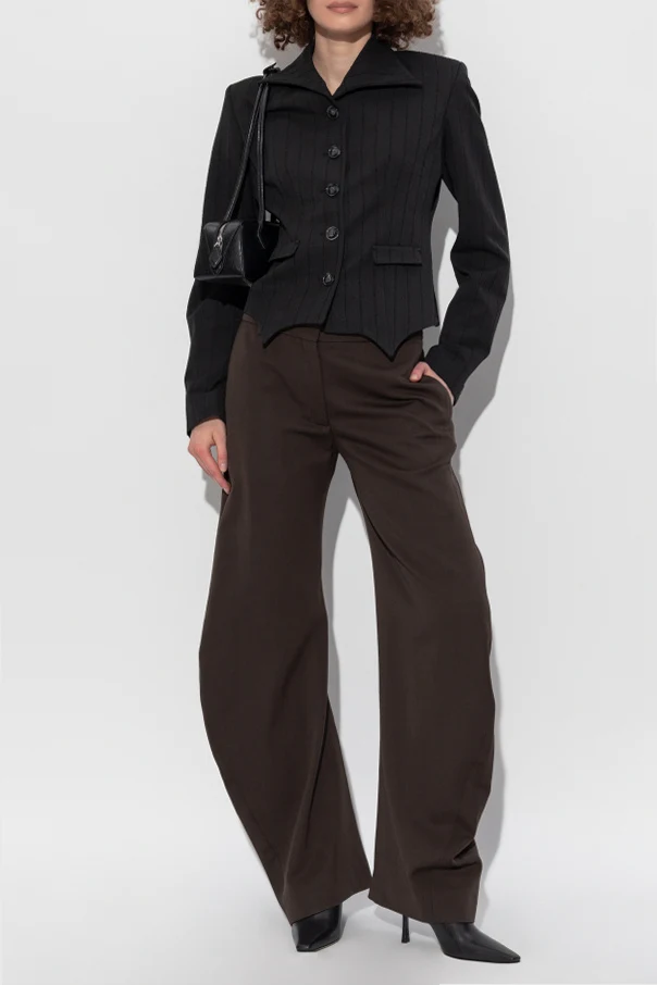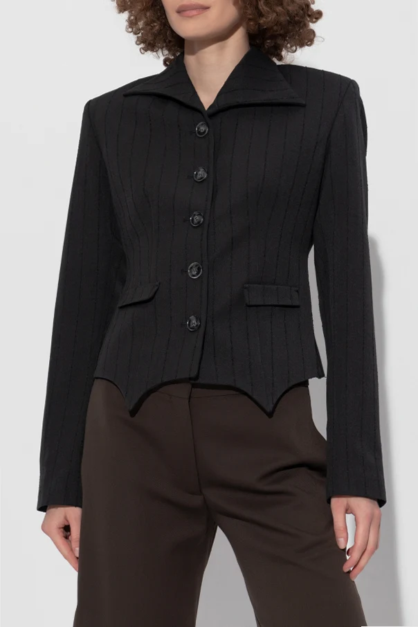 Geometryczny, nieregularny wykrój dolnej krawędzi z zaokrągleniami przyciąga uwagę, odróżniając marynarkę na tle tradycyjnych modeli. Długi rękaw oraz klasyczna długość do bioder gwarantują uniwersalność i ponadczasowy charakter tej propozycji.