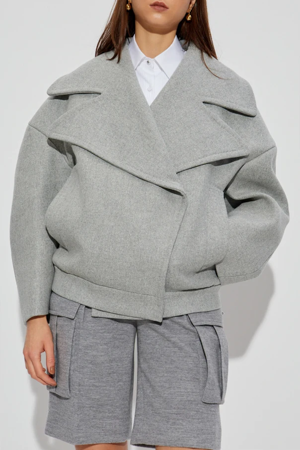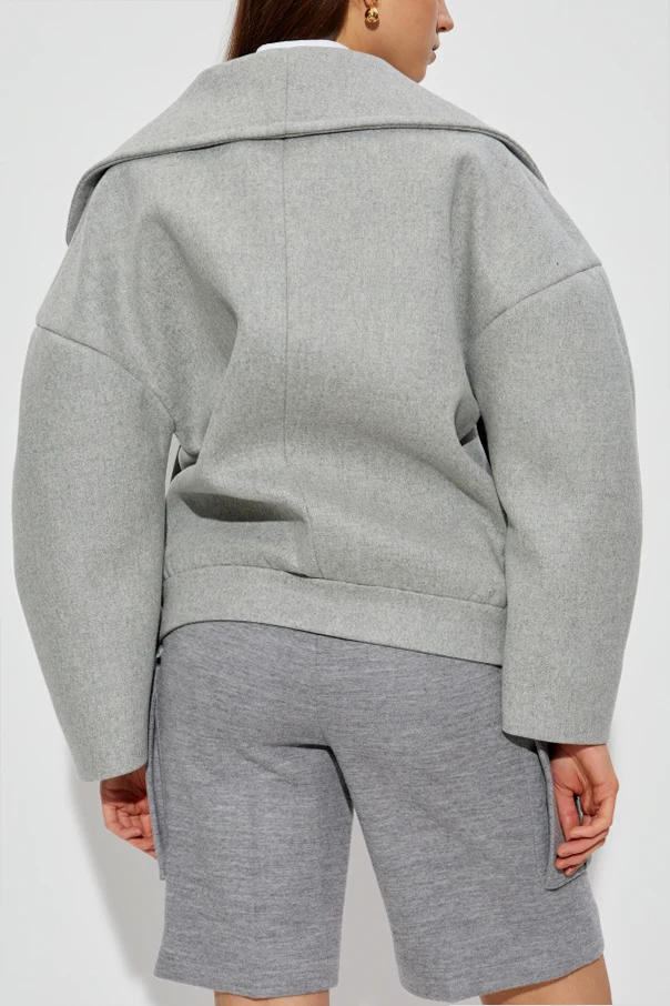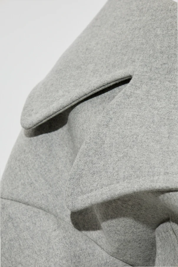 Kurtka uszyta została z ekskluzywnej, miękkiej tkaniny wełnianej z domieszką kaszmiru, o delikatnej, filcowej strukturze, oferując subtelny dotyk i doskonały komfort noszenia. Konstrukcja oparta na prostym, krótkim kroju z dyskretnie wpuszczanymi, ukośnymi kieszeniami akcentuje praktyczność, jednocześnie pozostając subtelną. Zamknięcie ukryte pod materiałem czyni całość jeszcze bardziej szlachetną.