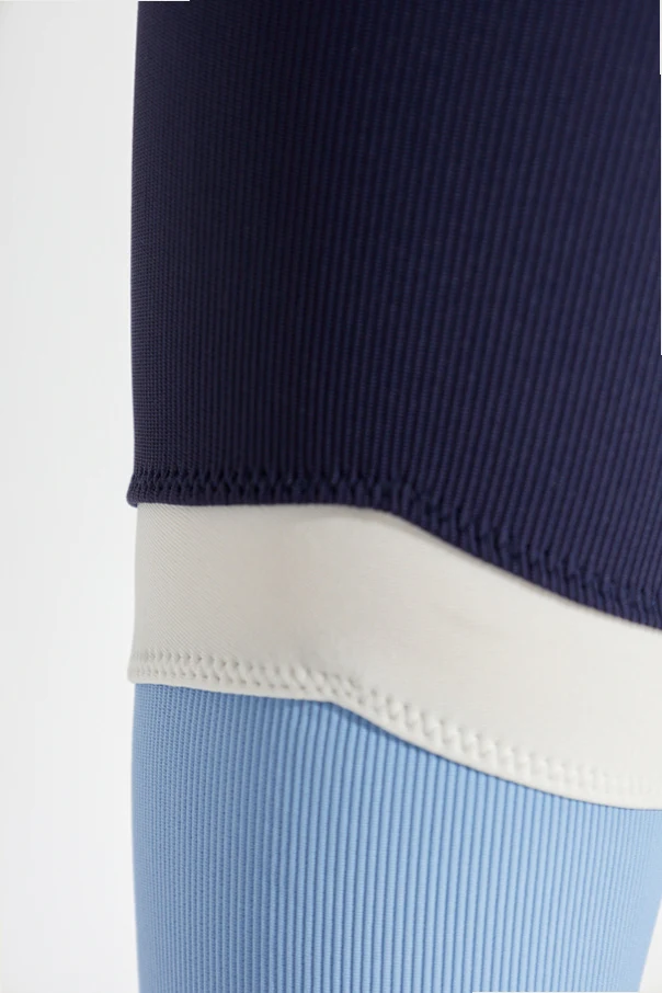 Legginsy Silverstone z ekskluzywnej kolekcji The Upside zachwycają niezwykłą estetyką oraz precyzją wykonania. Wykonane z wyselekcjonowanych włókien, odznaczają się granatowym odcieniem, podkreślonym przez kontrastowe, szerokie pasy w kremowym i błękitnym kolorze u dołu nogawek. Gładki, minimalistyczny fason z lekko podwyższonym stanem i delikatnym ściągaczowym splotem gwarantuje wygodę oraz doskonałe dopasowanie. Regulowany ściągacz w talii z metalowymi końcówkami sznurków pozwala na indywidualne dopasowanie, a starannie wykonane szwy czynią ten model wyjątkowo trwałym. Dyskretna elegancja bez widocznego logotypu podkreśla wyrafinowany charakter produktu.