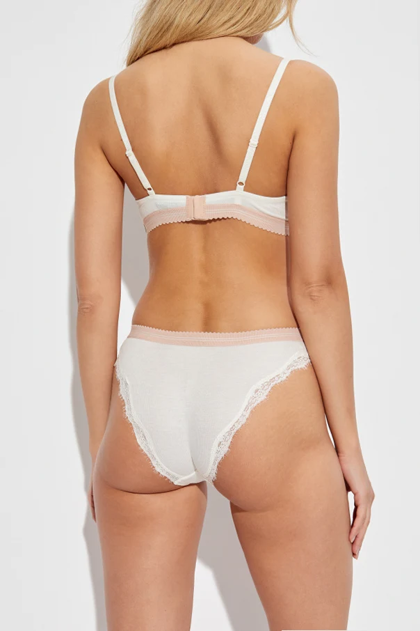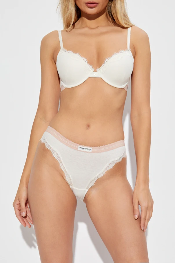 Prążkowane figi marki Emporio Armani to ukłon w stronę wyrafinowanego gustu i niewymuszonej elegancji. Wyróżniają się klasycznym krojem z precyzyjnie wyciętymi nogawkami, które zapewniają wygodne dopasowanie do sylwetki. Zastosowanie prążkowanej, elastycznej dzianiny oraz misternie wykonanej, ażurowej koronki w kolorze białym podkreśla ponadczasową subtelność. Szeroki, jasnoróżowy pas z geometrycznym wzorem nie tylko doskonale podtrzymuje, lecz także stanowi intrygujący akcent kontrastowy. Delikatna naszywka z nazwą projektanta zdobiąca pas świadczy o kunszcie oraz prestiżowym rodowodzie produktu.
