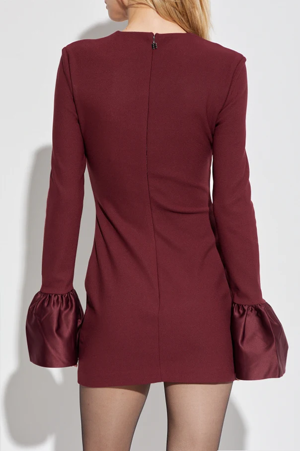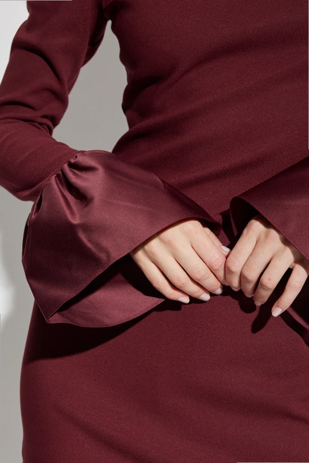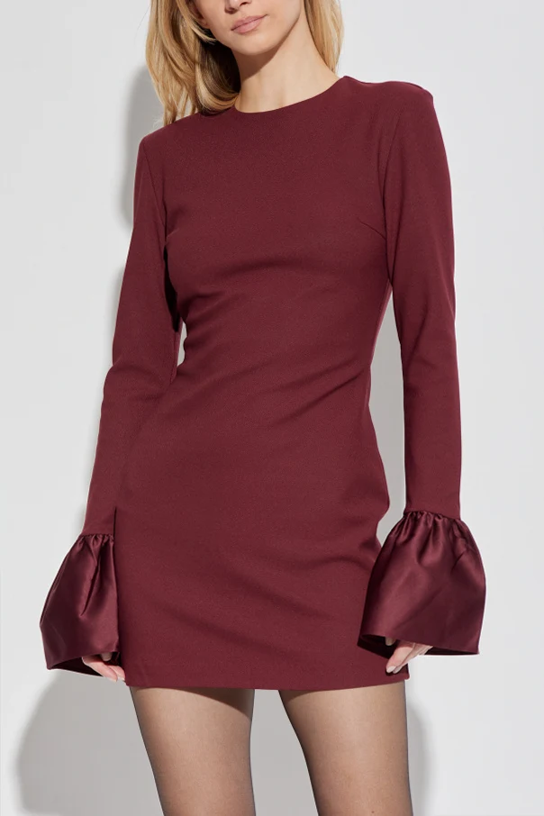 Sukienka z długimi rękawami marki ROTATE zachwyca wyrafinowaną prostotą oraz śmiałym, nasyconym czerwonym kolorem, który przykuwa uwagę i wyraża pewność siebie. Starannie dopasowana do sylwetki linia podkreślona wyraźną talią oraz subtelnie prosty dół tworzą harmonijną i ponadczasową całość.