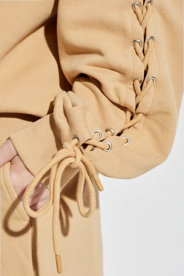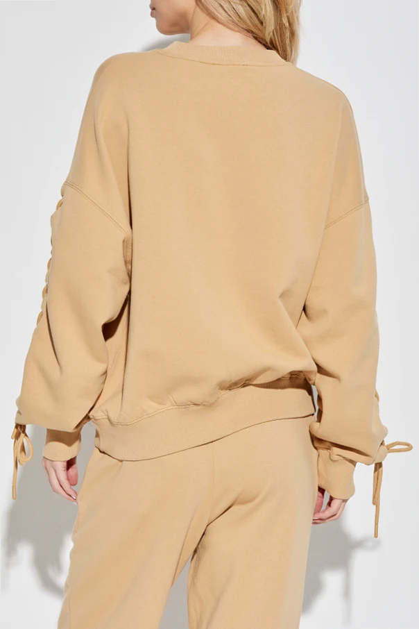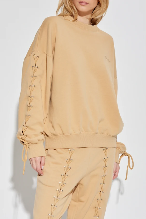 Bluza przeplatana trokami na rękawach marki ROTATE to esencja skandynawskiej wyrafinowanej prostoty w odsłonie beżowej. Fason oversize podkreśla swobodę i ponadczasowy charakter, a luźne, długie rękawy oraz zaokrąglony dekolt wpisują się w styl minimalistyczny.