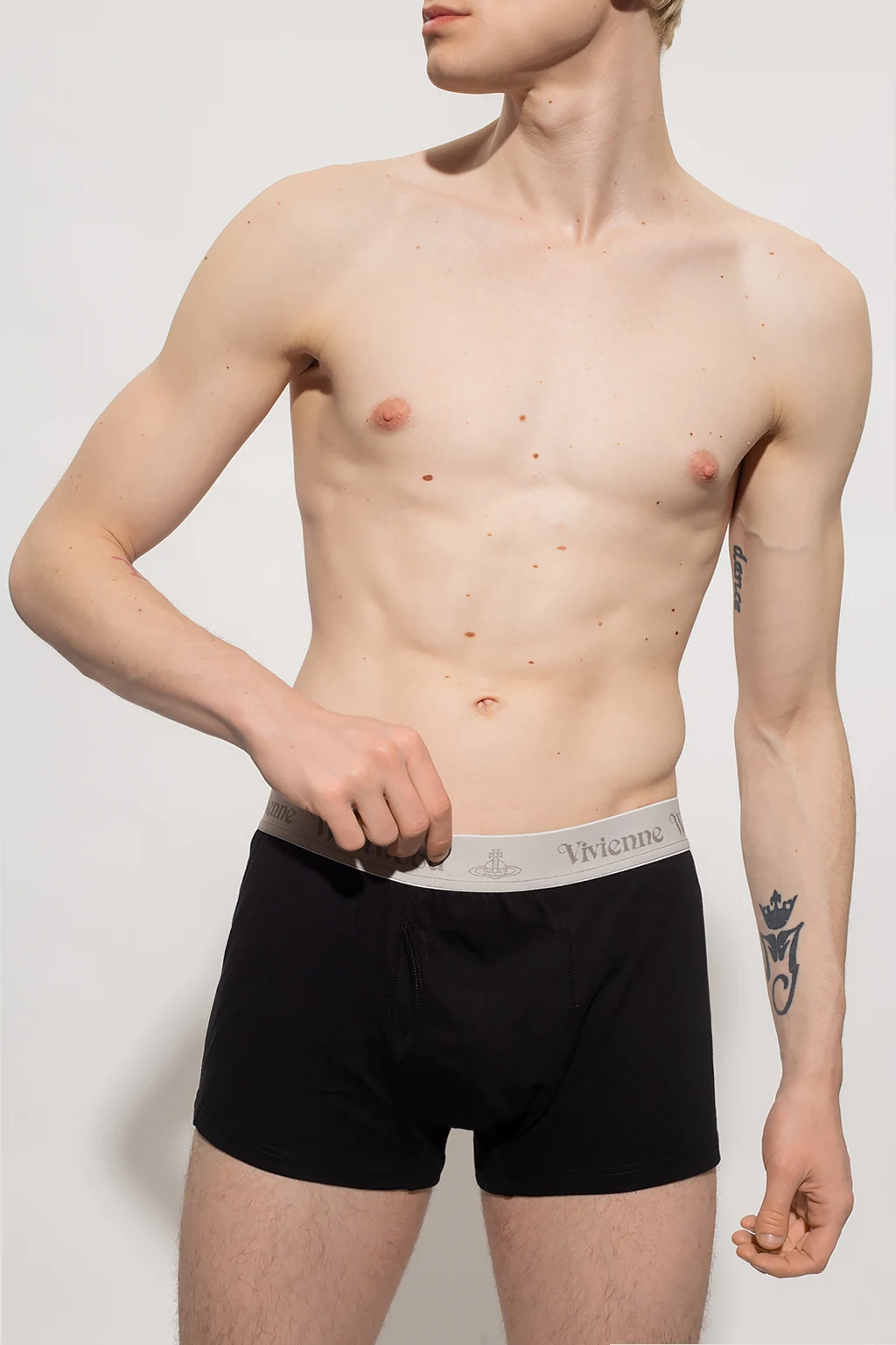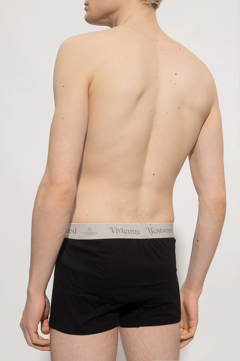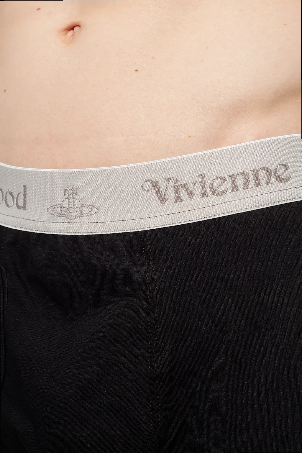 Dwupak czarnych bokserek Vivienne Westwood, kolekcja ‘Underwear’. Wykonane z bawełny organicznej. W pasie wszyta guma z logo w kolorze szarym.