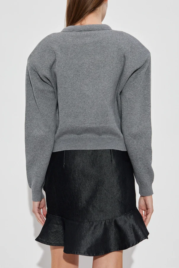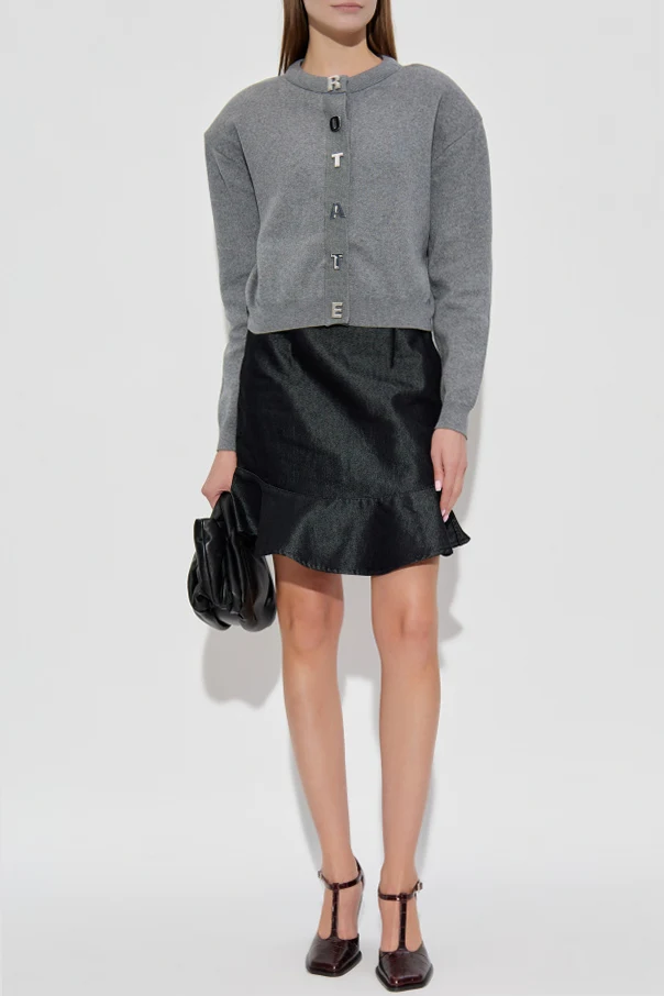 Wełniany kardigan z logo marki ROTATE to kwintesencja skandynawskiego wyrafinowania z nutą współczesnej odwagi. Prosty, lekko skrócony fason typu boxy urzeka starannie przemyślanym krojem – bufiaste rękawy z subtelnym ściągaczem na dole oraz przy mankietach podkreślają nowoczesny, komfortowy charakter narzutki.