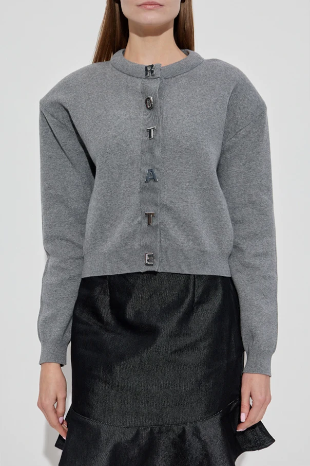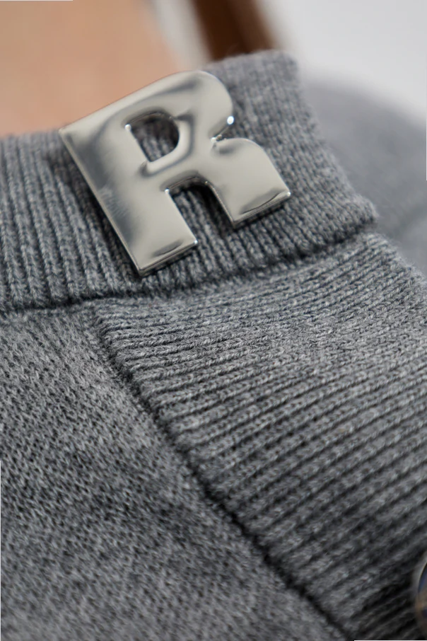 Wykonany z luksusowej dzianiny, w której miękka wełna spotyka się z szlachetnością kaszmiru, kardigan opromienia szarość minimalistyczną elegancją i efektownym wykończeniem. Model wyróżnia się nie tylko gładką powierzchnią, lecz także intrygująco zaprojektowanymi, metalicznymi guzikami – każda połyskująca litera wyraża logo „ROTATE”, tworząc wyrazisty, lecz subtelny detal nad całym przodem swetra.