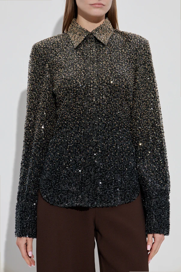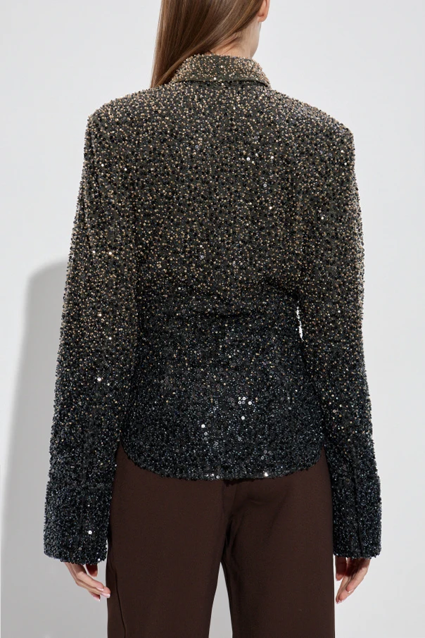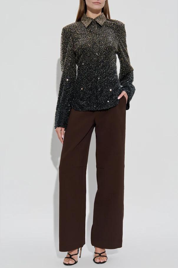 Cekinowa koszula marki ROTATE urzeka wyszukaną elegancją i współczesną interpretacją klasyki. Dopasowany fason z zaakcentowaną talią oraz klasyczny kołnierzyk harmonijnie łączą tradycyjną formę z nowoczesnym blaskiem. Długie, proste rękawy o subtelnie wydłużonych mankietach nadają sylwetce szlachetnego wyrazu.