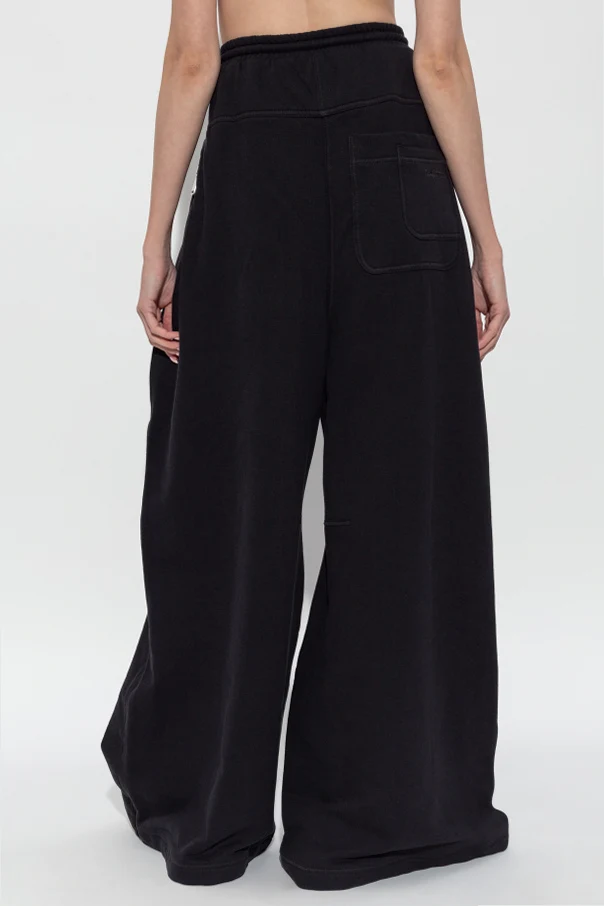 Spodnie dresowe z szerokimi nogawkami w odcieniu czarnym są kwintesencją połączenia współczesnego komfortu i wyszukanej elegancji. Fason typu wide leg zachwyca swoją swobodą, nadając sylwetce lekkości oraz modowego charakteru. Wyrób powstał z mistrzowskiego połączenia najwyższej jakości bawełny i szlachetnego kaszmiru, co zapewnia niezwykłą miękkość, otulający dotyk oraz doskonałą trwałość materiału.