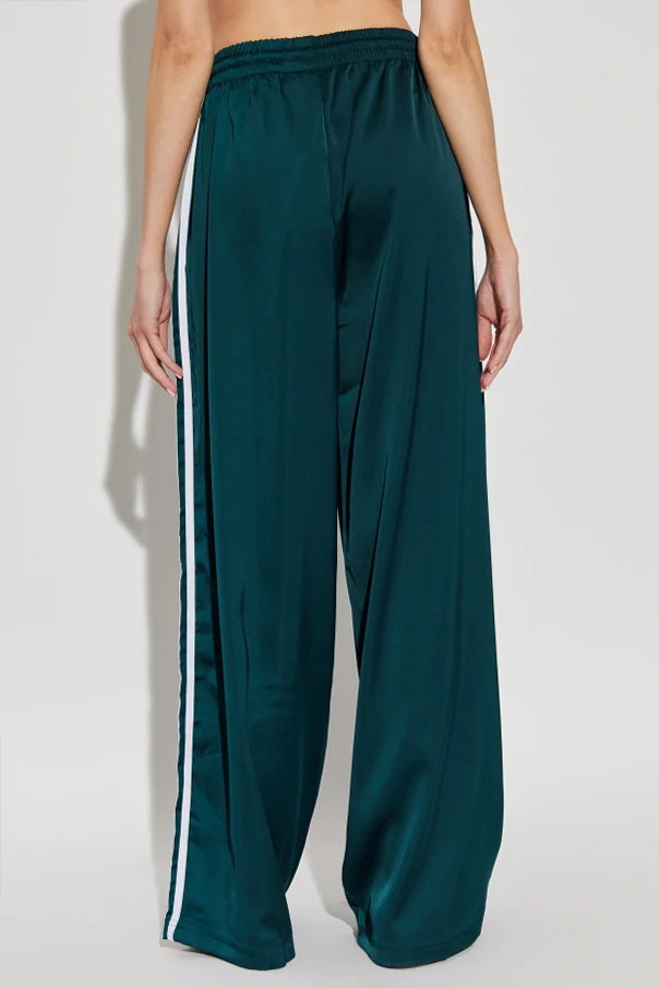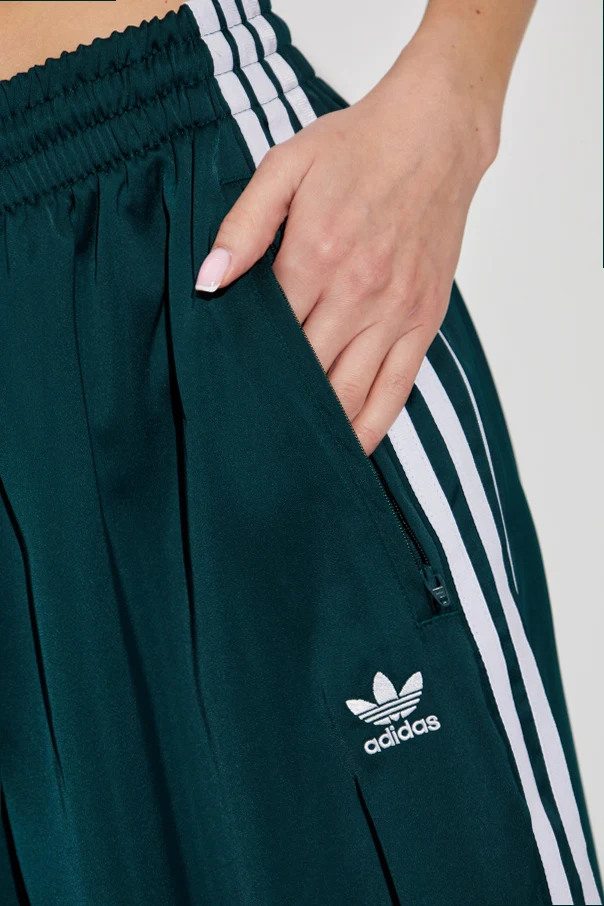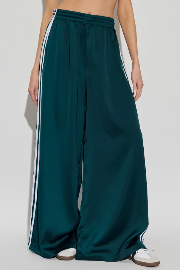 Szerokie nogawki typu palazzo subtelnie podkreślają swobodę ruchów, a szeroki, marszczony pas gwarantuje znakomite dopasowanie do sylwetki. Całość wieńczą kultowe trzy białe paski na całej długości nogawek oraz wyraziste logo „adidas Originals”, będące symbolem ponadczasowego stylu.