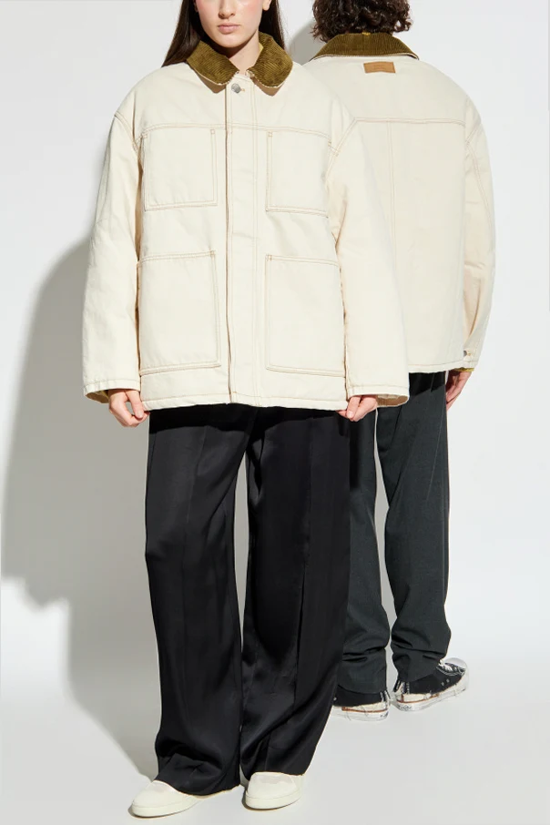Ocieplana kurtka ze sztruksowym kołnierzem jest wyrazem subtelnej ekskluzywności inspirowanej paryską nonszalancją, będąc dziełem renomowanego projektanta Ami Alexandre Mattiussi . Jej prosty, lekko pudełkowy krój z opuszczonymi ramionami zachwyca niebanalną swobodą i komfortem, jednocześnie zachowując elegancki charakter.