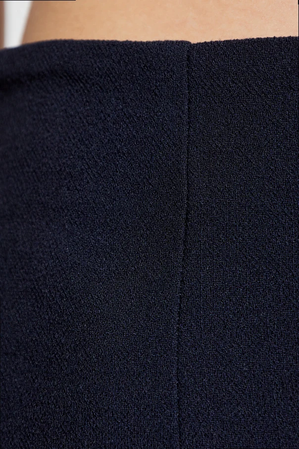 Te granatowe spodnie wykonano z gładkiej, lekko strukturalnej wełny, znanej z miękkości, wyjątkowej trwałości oraz luksusowego wykończenia. Grubsza tkanina podkreśla doskonałe proporcje i zapewnia komfort noszenia przez cały dzień.