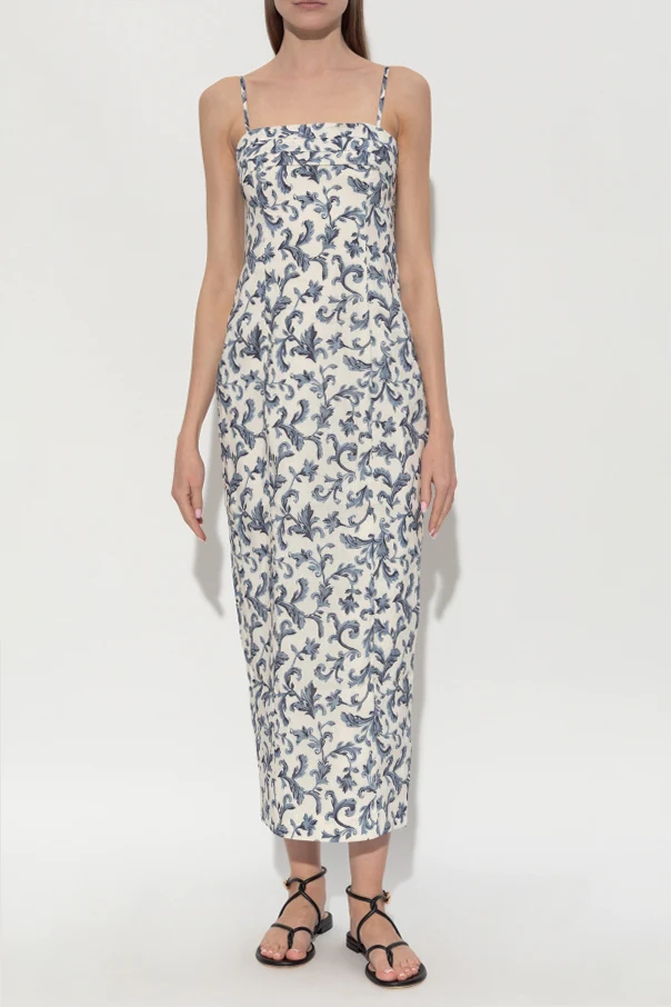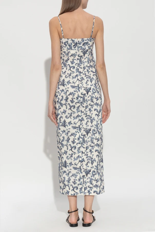 Sukienka Rue z ekskluzywnej kolekcji Posse stanowi kwintesencję subtelnej elegancji, zachwycając klasycznym fasonem midi oraz lekko zwężaną linią, która harmonijnie podkreśla sylwetkę. Finezyjny charakter nadają jej cienkie ramiączka, kwadratowy dekolt oraz dekoracyjne, poziome przeszycia w okolicy biustu, które subtelnie uwypuklają linię szyi.