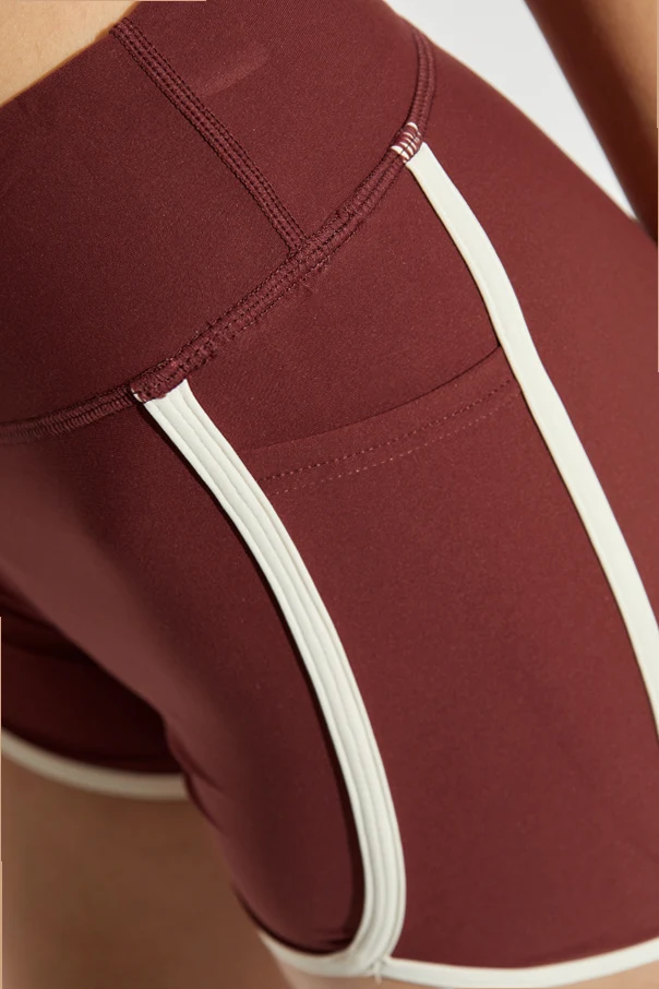 Szorty Samara to kwintesencja nowoczesnej elegancji, stworzona z myślą o kobietach ceniących wyrafinowany styl w sportowym wydaniu. Wyróżnia je wysoki stan , który pięknie podkreśla linię talii oraz dynamiczny, kobiecy krój z zaokrąglonymi nogawkami. Gładki, jednolity materiał w odcieniu bordo harmonijnie współgra z kontrastowymi kremowymi lamówkami, akcentując unikatowy, retro-wyraz sportowej sylwetki.