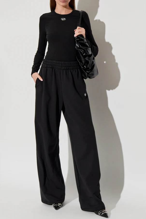 Ekskluzywne spodnie dresowe P-ZENIA-OD od Diesel to esencja współczesnej wygody i wyrafinowanego stylu. Ich luźny, szeroki krój z nogawkami rozszerzanymi ku dołowi harmonijnie łączy swobodę ruchu z ponadczasową elegancją. Wyjątkowy komfort zapewnia elastyczny, szeroki pas z subtelnym marszczeniem, dyskretnie podkreślający sylwetkę.