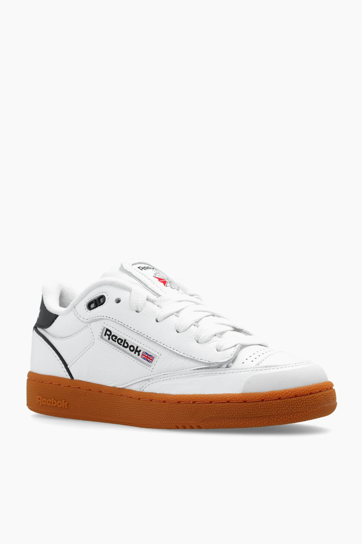 Biało-czarno-brązowe, sznurowane buty sportowe, model ‘CLUB C BULC’ Reebok. Wykonane ze skóry i materiałów syntetycznych. Ozdobione aplikacją z logo oraz pogrubionym językiem. Brązowa, gumowa podeszwa.