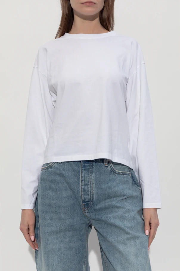 Top z długimi rękawami marki Rag & Bone to esencja niezobowiązanej elegancji o zdecydowanie minimalistycznym wydźwięku. Utrzymany w wyrafinowanej, śnieżnobiałej tonacji, zachwyca jednolitą, gładką strukturą, pozbawioną wszelkich wzorów czy dekoracyjnych aplikacji.