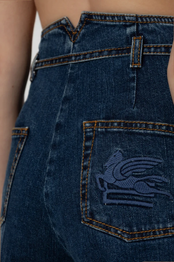 Jeansy z szerokimi nogawkami marki Etro stanowią uosobienie współczesnej elegancji i wyrafinowanego stylu. Zaprojektowane z myślą o kobietach ceniących komfort i unikatowy design, wyróżniają się luźnym, prostym krojem typu wide leg oraz wysoką, dopasowaną talią ozdobioną efektownym wycięciem z tyłu.