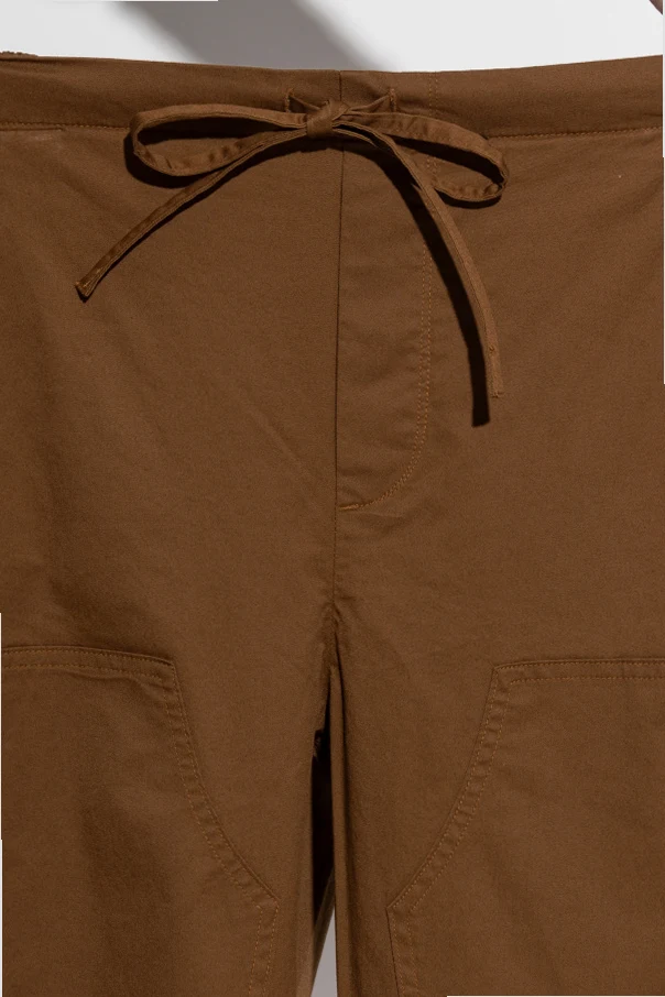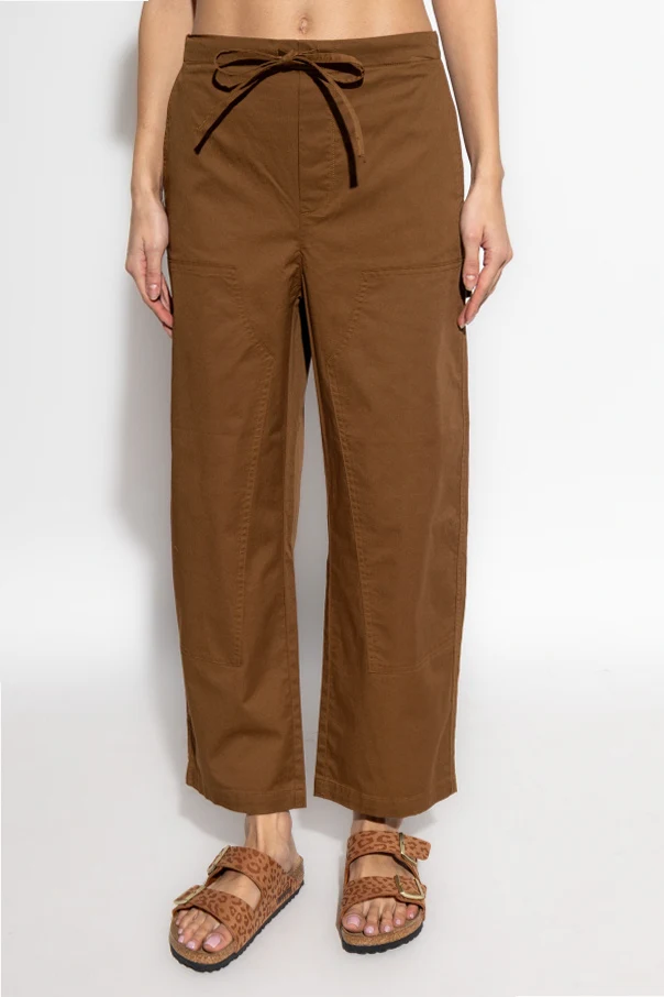 Wyraźnie naszywane kieszenie z przodu i pojemne kieszenie z tyłu, ozdobione precyzyjnymi przeszyciami, dodają spodniom wymiaru funkcjonalności oraz eleganckiego wykończenia. Elastyczny pas z troczkiem umożliwia indywidualne dopasowanie.