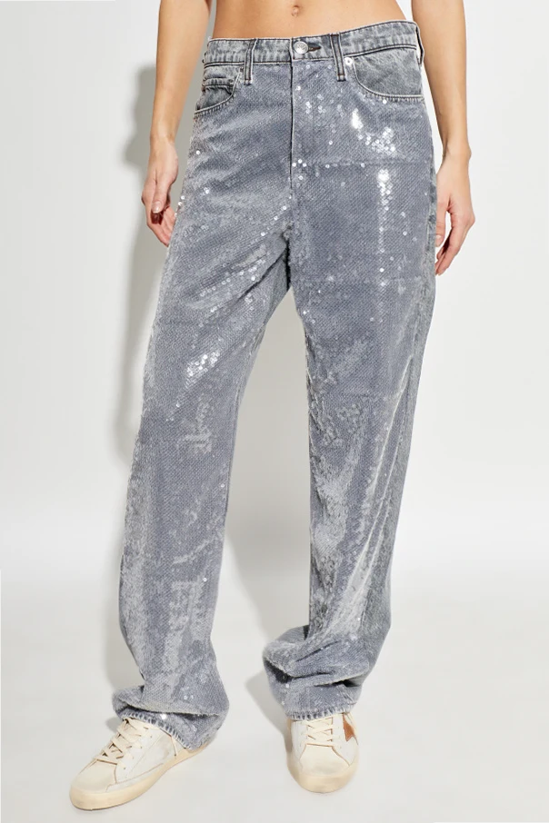 Jeansy z połyskującymi cekinami marki Rag & Bone stanowią wyrafinowane połączenie klasycznej formy z nowoczesnym luksusem. Szary odcień bawełnianego denimu subtelnie kontrastuje z równomiernie rozmieszczonymi, lśniącymi cekinami, które tworzą efekt olśniewającej elegancji. Prosty fason z szerokimi nogawkami zapewnia nieprzemijający komfort oraz luźną, wyraźnie nonszalancką sylwetkę.