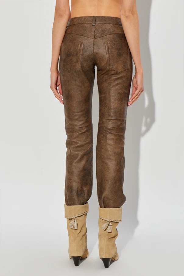 Skórzane spodnie ‘Vanel’ projektu Isabel Marant to esencja ponadczasowej elegancji, łącząca klasykę z wyrafinowaną nowoczesnością. Starannie skrojone z najwyższej klasy skóry jagnięcej , wyróżniają się subtelną, lekko postarzoną fakturą oraz niezwykle solidnym wykończeniem.