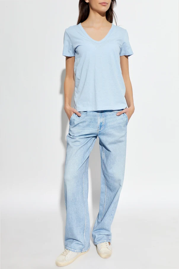 T-shirt z dekoltem w serek marki Rag & Bone to wyrafinowany manifest codziennej elegancji. Model o klasycznej, lekko dopasowanej linii harmonijnie układa się na sylwetce, a wyrazisty dekolt w serek nadaje kompozycji lekkości oraz subtelnie wydłuża szyję. Jasnoniebieski odcień podkreśla ponadczasowy charakter produktu i łatwość zestawiania z innymi elementami garderoby.