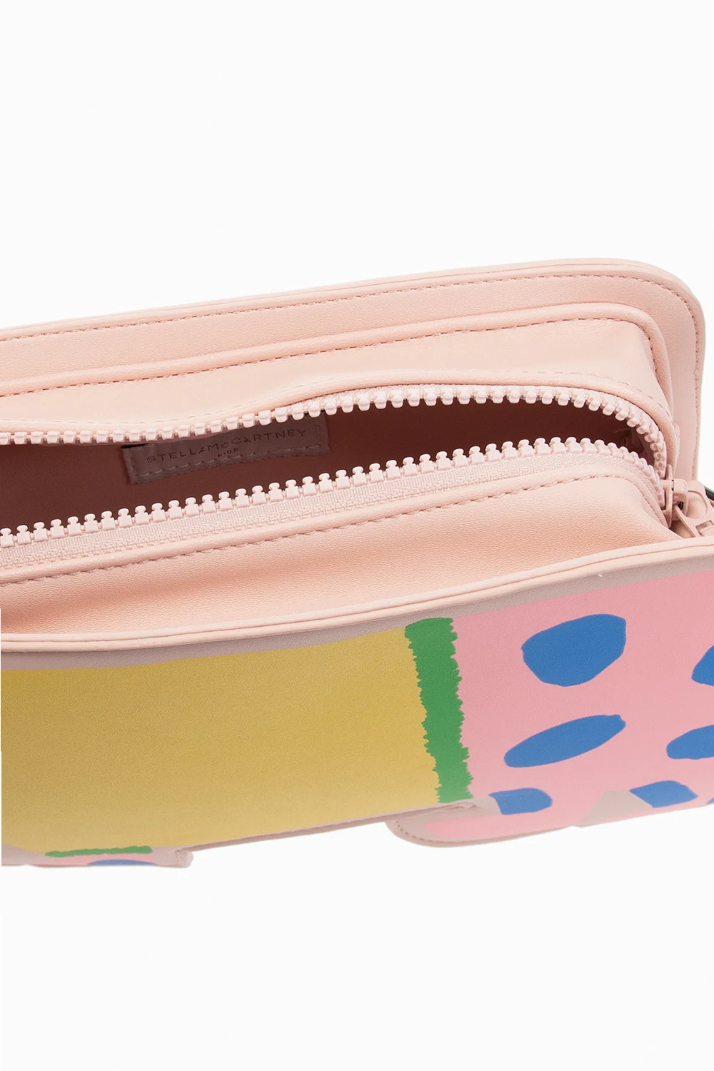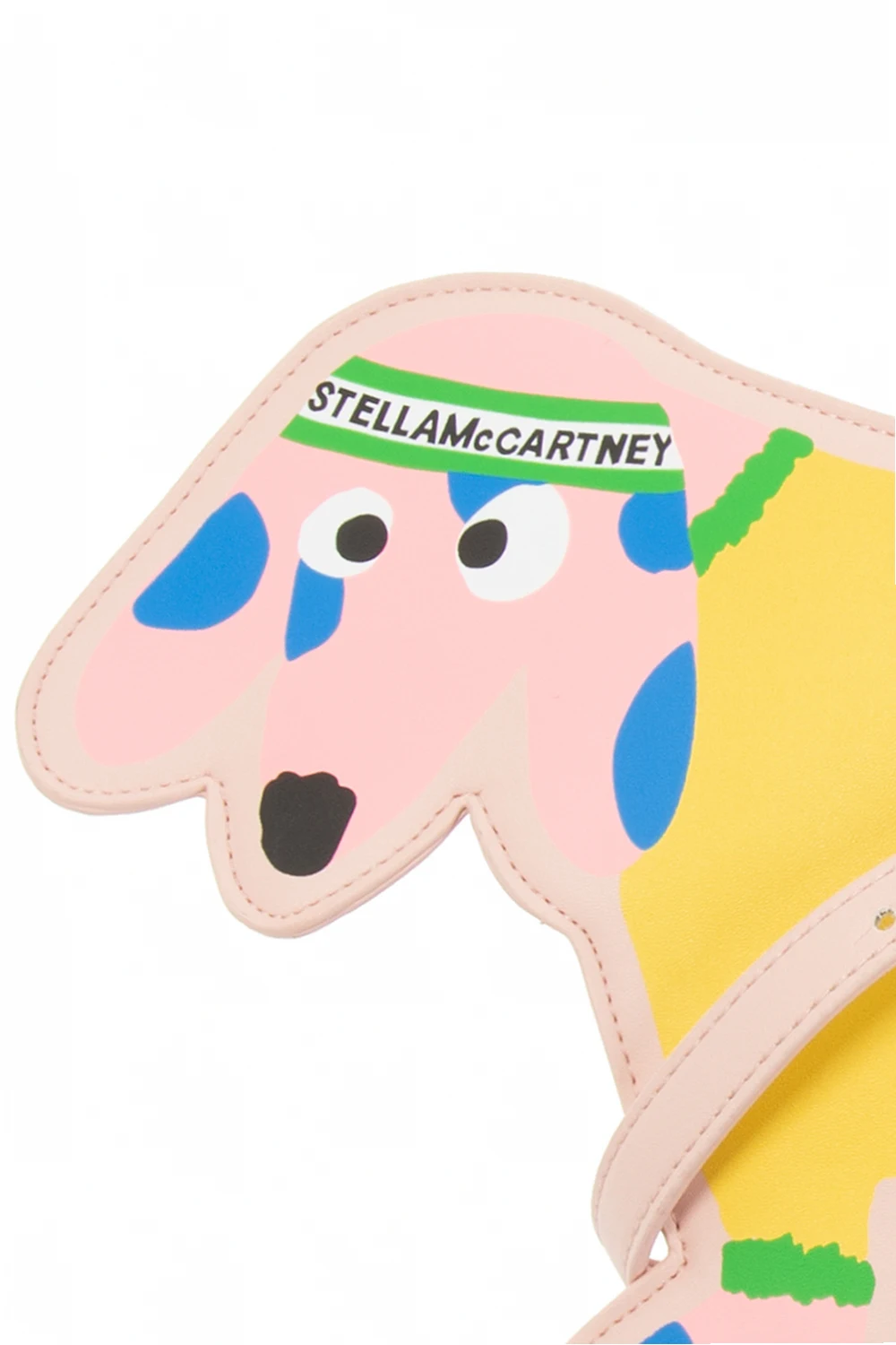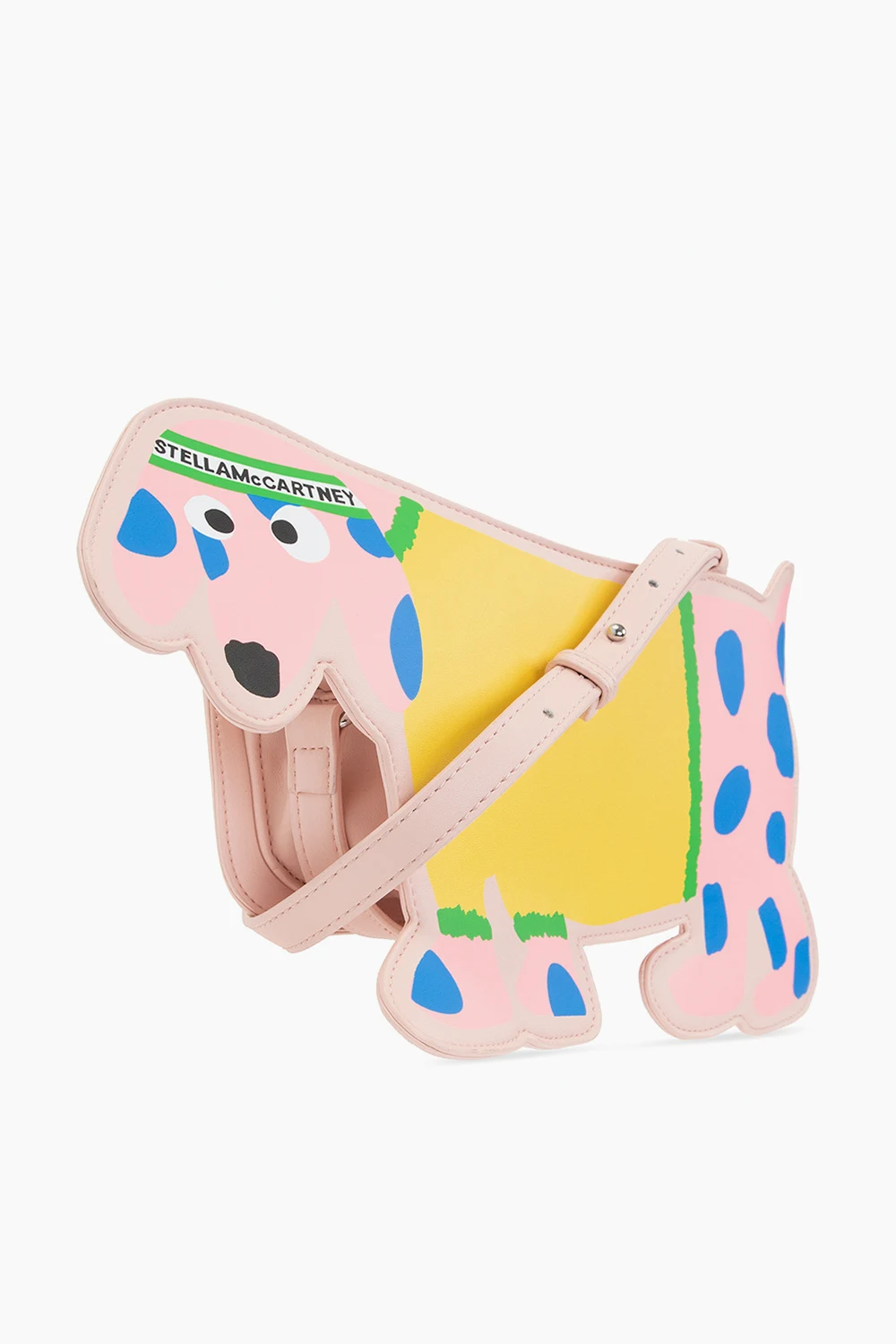 Jasnoróżowa torba na ramię Stella McCartney Kids. Zamykana na zamek. Ozdobiona kolorową aplikacją w kształcie psa. Pasek na ramię z możliwością regulacji długości. Wewnątrz komora.