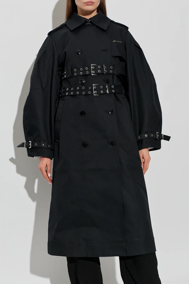 Bawełniany trencz z paskiem marki Ganni to wyznacznik doskonałości w obszarze okryć wierzchnich, zaprojektowany z myślą o miłośniczkach nowoczesnej klasyki. Czarne, matowe oblicze bawełny stanowi kanwę dla minimalistycznej, lekko przerysowanej sylwetki typu oversize – płaszcz sięga poniżej kolan, nadając wyjątkowej elegancji każdej stylizacji.