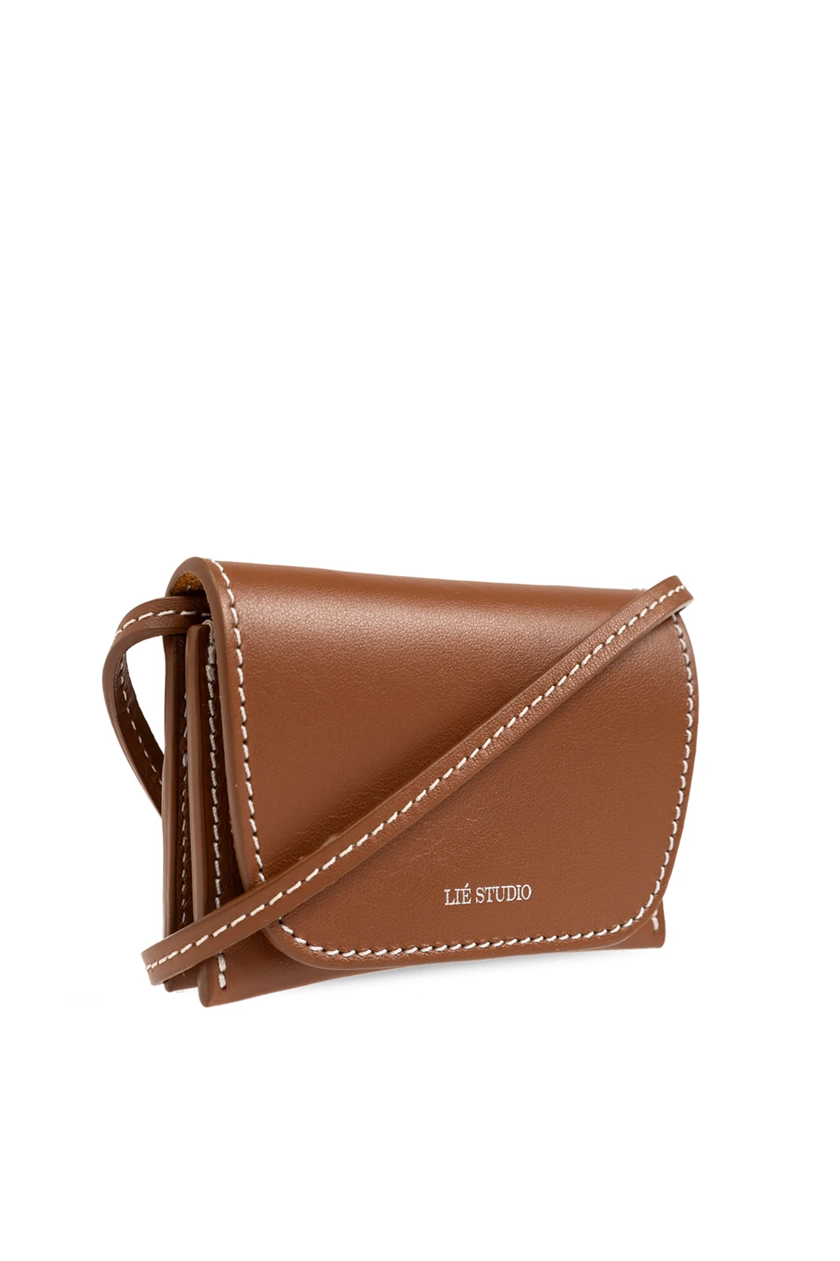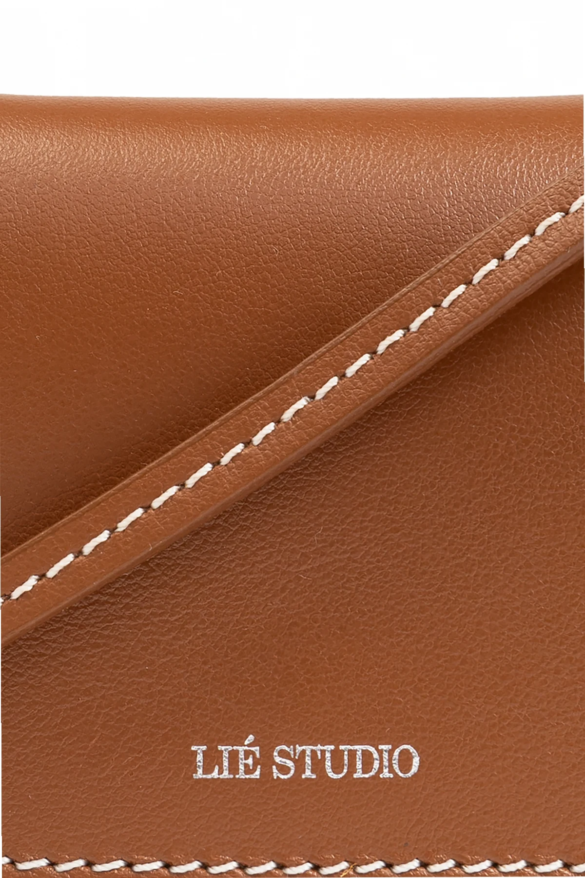 Kształt prostokątny z zaokrąglonymi krawędziami oraz minimalistyczny wzór podkreślają jego subtelną elegancję. Wykonany z najwyższej jakości skóry o gładkiej teksturze, portfel emanuje ponadczasowym szykiem. Białe, kontrastowe przeszycia wokół krawędzi dodają mu wyrazistości, a białe logo „LIÉ STUDIO” na przedniej klapie stanowi dyskretny znak luksusu.