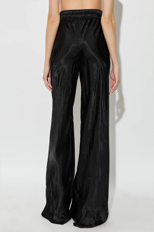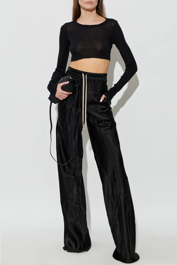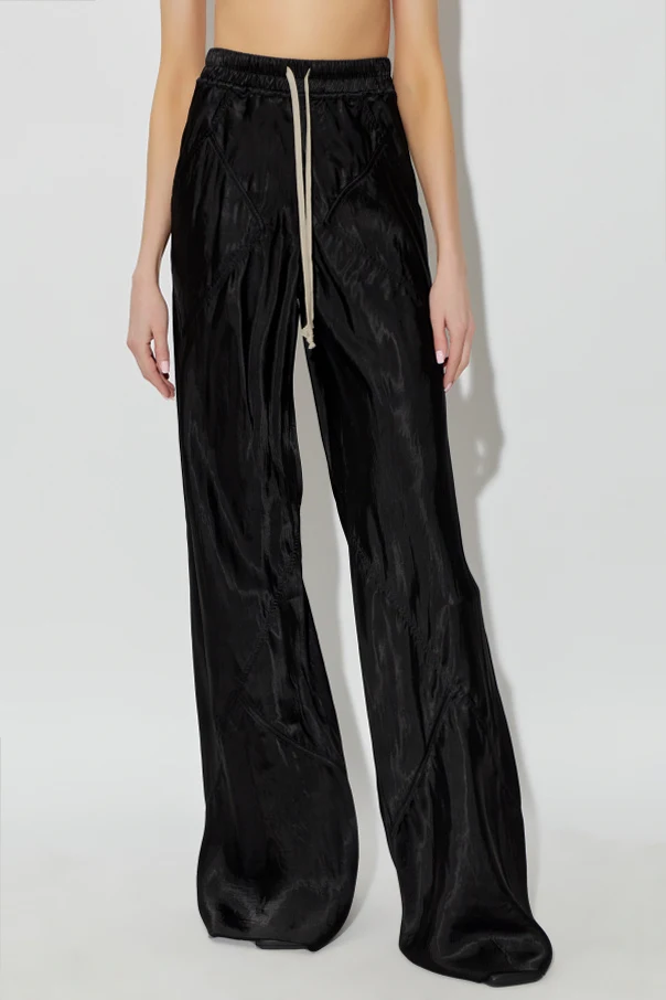Spodnie z szerokimi nogawkami autorstwa Ricka Owensa to ukłon w stronę ponadczasowej awangardy i niezrównanego artyzmu współczesnej mody. Śmiałe, bardzo szerokie nogawki typu wide leg prezentują się wyjątkowo efektownie, a wysoki stan oraz długość podkreślają sylwetkę z rzeźbiarską precyzją.