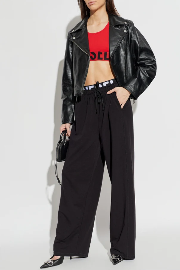 Delikatna w dotyku tkanina, oparta na wysokiej jakości bawełnie z domieszką elastanu, subtelnie dopasowuje się do sylwetki, zapewniając pełną swobodę ruchów. Jednolity czerwony kolor podkreśla wyrazisty charakter projektu, zaś szeroki elastyczny pas pod biustem, efektownie zdobiony dużym, czarnym logo Diesel, przyciąga spojrzenia i nadaje całości designerskiej świeżości.