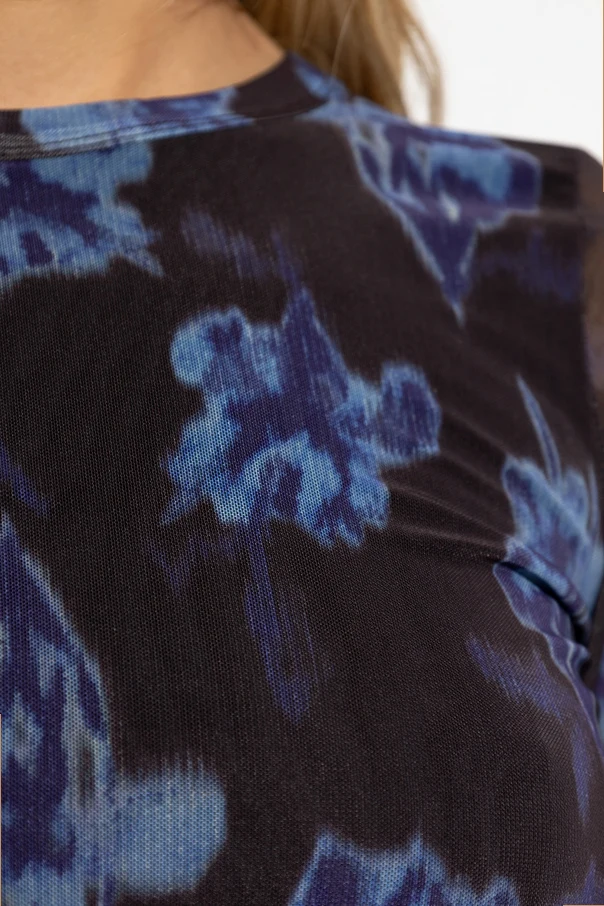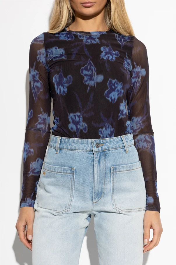 Top z motywem kwiatowym marki Rag & Bone emanuje nowoczesną wyrafinowaną estetyką. Fason dopasowany, z długim rękawem i klasycznym, lekko zaokrąglonym dekoltem, doskonale podkreśla sylwetkę, oferując niezwykły komfort i swobodę ruchu. Przezroczysty, siateczkowy materiał przyjemnie otula skórę, zapewniając przewiewność i subtelną lekkość.