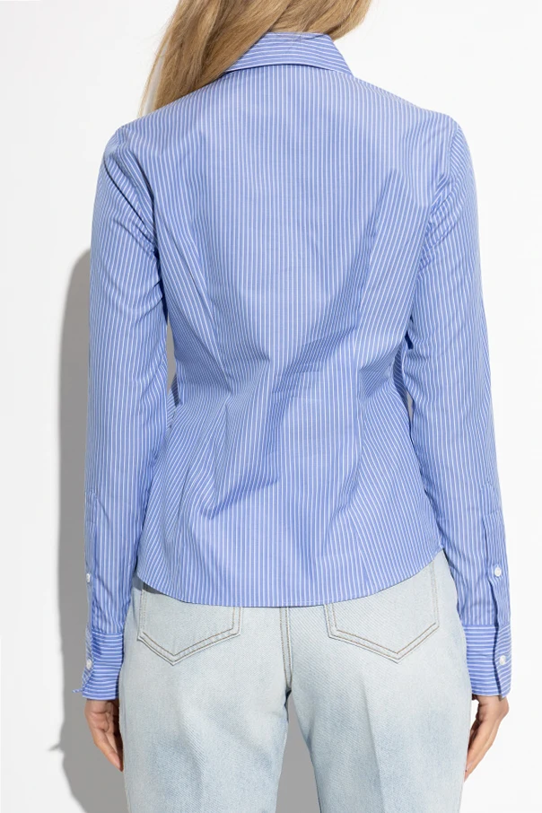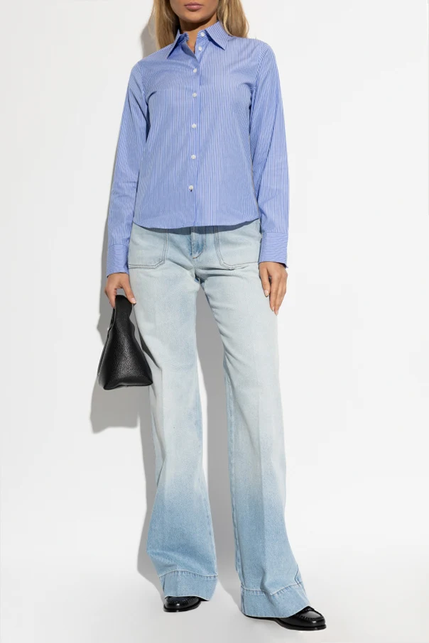 Odkryj koszulę ze wzorem w prążki marki Rag & Bone – synonim subtelnej elegancji w codziennym wydaniu. Klasyczna, taliowana sylwetka o prostym dole harmonijnie podkreśla kobiecą figurę, a finezyjne, białe prążki na niebieskim tle nadają stylizacji lekkości i wyjątkowego szyku.